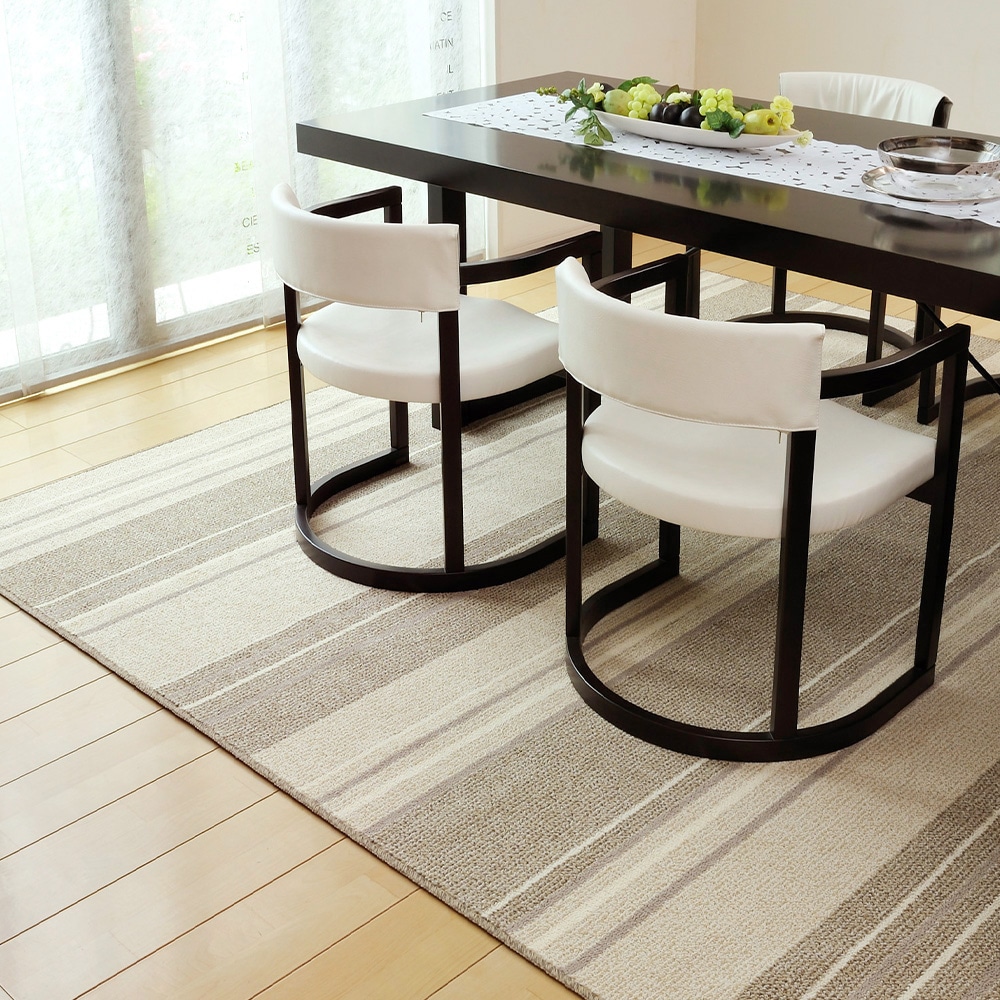 お部屋のアクセントにぴったりなスタイリッシュなデザイン。防ダニ・抗菌・撥水・防汚の機能付きでダイニングだけでなく、リビングにもお勧めです。撥水加工で汚れにくく、水をこぼしても安心です。裏面は床を傷付けにくい不織布貼りです。