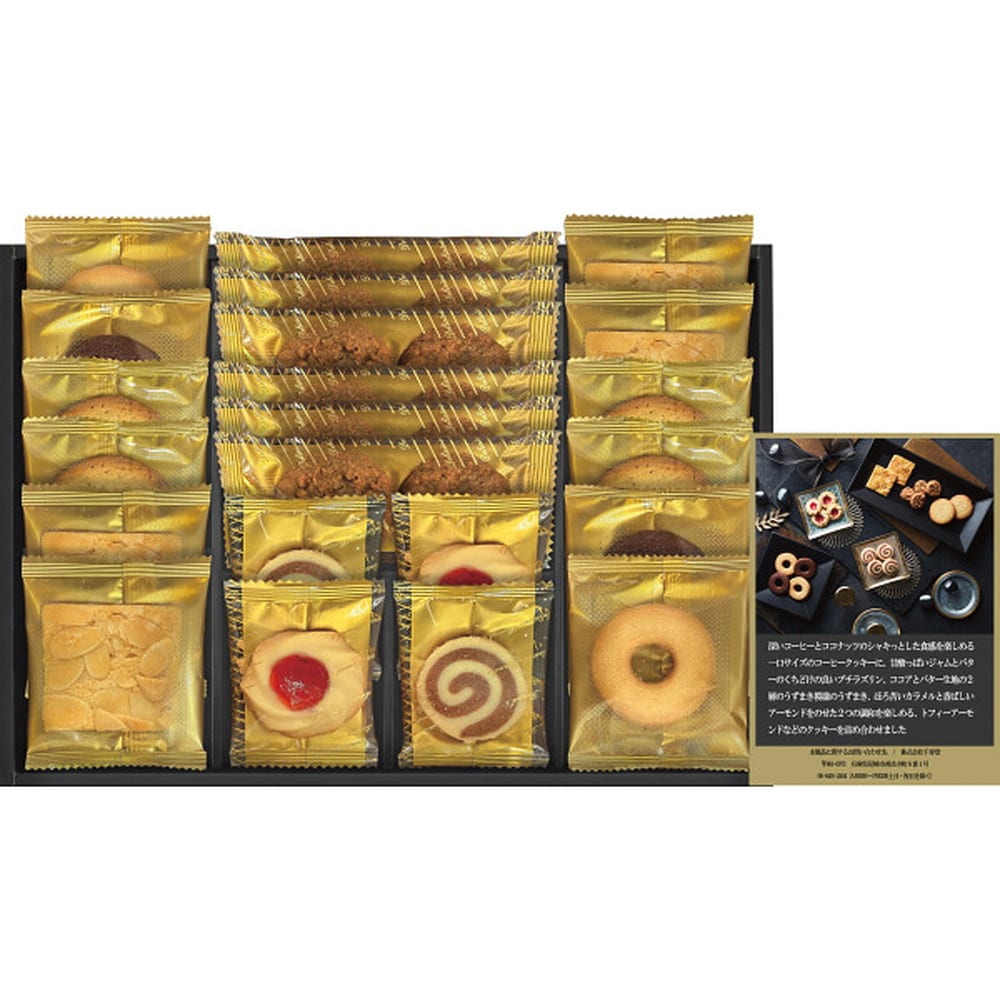 ●クッキー(プチコーヒー2枚入×6、プチラズリン・うずまき・リングバター・リングココア×各2、トフィーアーモンド・アールグレイ×各4)