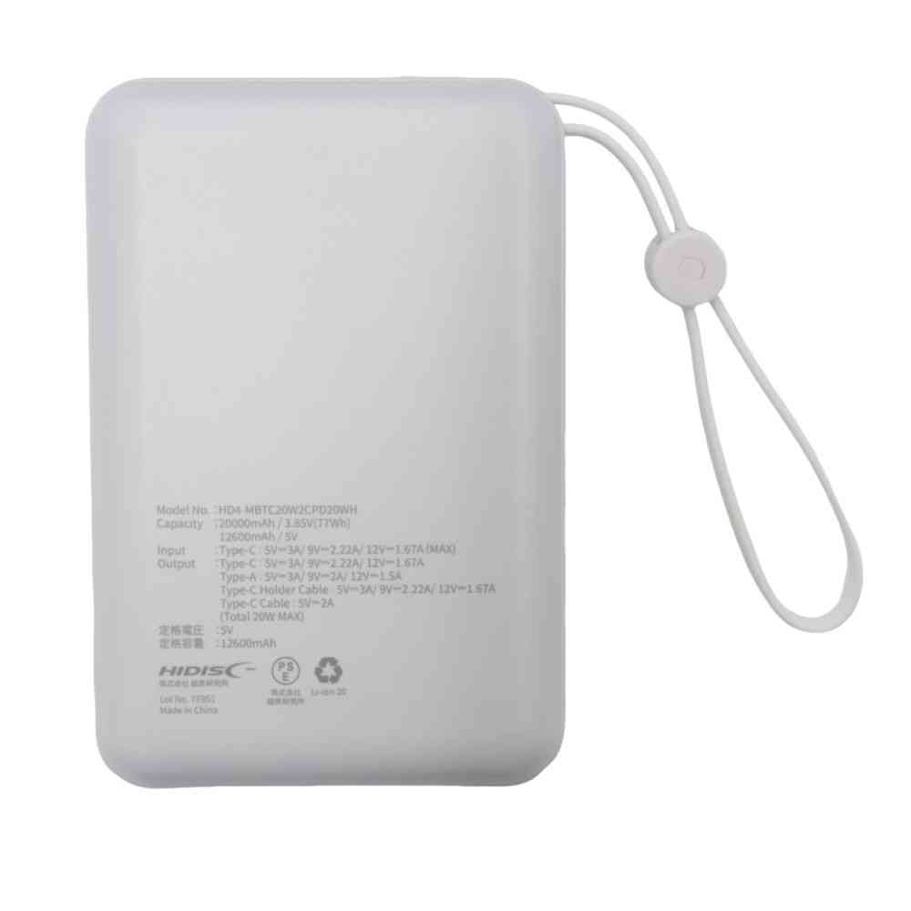 20000mAh、モバイルバッテリー、バッテリー、ホワイト、白、ケーブル付