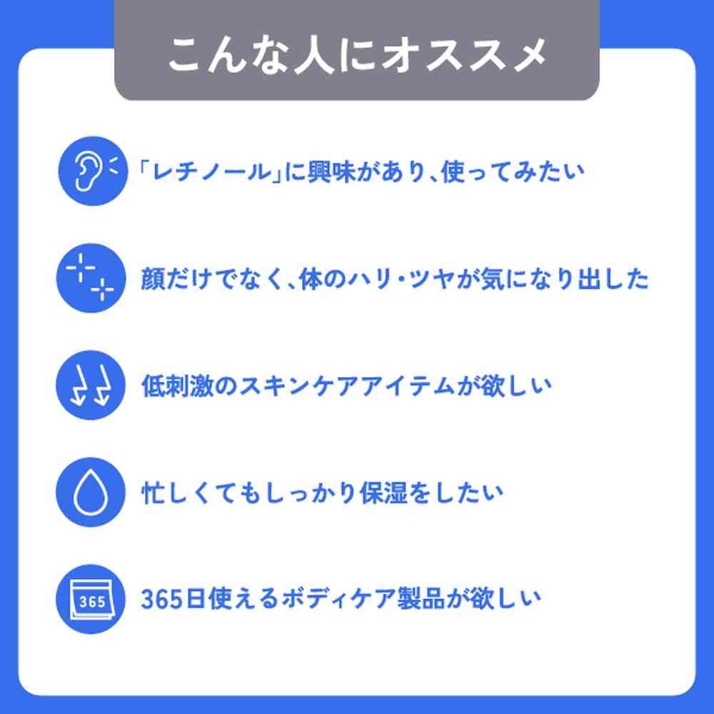 ボディミルク、保湿剤、保湿ミルク、レチノール、ボディケア、スキンケア、身体、全身、かさつき、乾燥肌、肌荒れ高保湿、保湿、保湿ケア、肌の乾燥、無着色、無香料、化粧品、美容、基礎化粧品