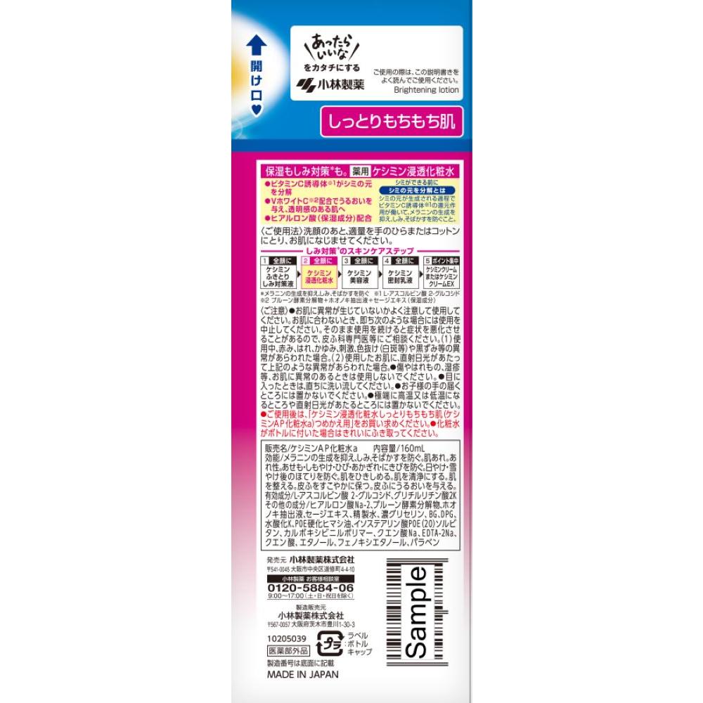 保湿もしみ対策も。[薬用]ケシミン浸透化粧水 ビタミンC誘導体がシミの元を分解 バージニアホワイト+配合でうるおいに満ちた透明感のある肌へ ヒアルロン酸(保湿成分)配合 シミができる前に「シミの元を分解とは」 シミの元が生成される過程でビタミンC誘導体の還元作用が働いて、メラニンの生成を抑え、しみ、そばかすを防ぐこと。 肌の乾燥が気になる方に。保湿力が高く、とろみのあるテクスチャーです