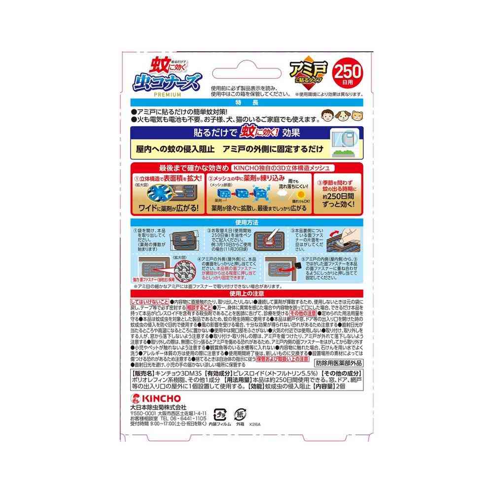 ![[防除用医薬部外品]金鳥 蚊に効く 虫コナーズ プレミアム 網戸に貼るタイプ 250日用 2個入](/img/0170/goods/1/4987115551060_2.jpg)