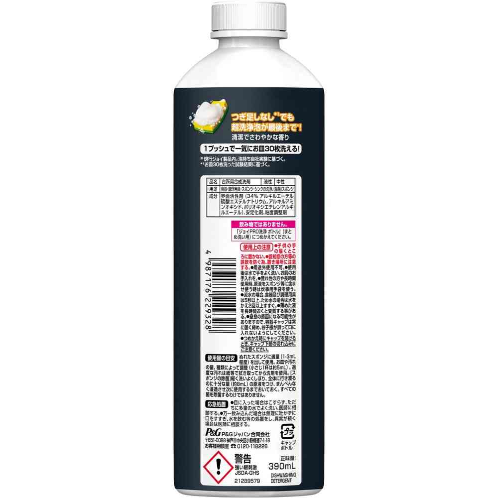 P&G、ピーアンドジー、ジョイ、JOY、じょい、PRO、PRO洗浄、プロ洗浄、プロ、食器用洗剤、食洗、食器洗い、食器、洗剤、お皿洗い、皿洗い、キッチン洗剤、キッチン、台所洗剤、台所、まとめ洗い、まとめ洗い用、泡持ち、つぎ足し、詰替、詰替え、詰め替え、つめかえ、レフィル