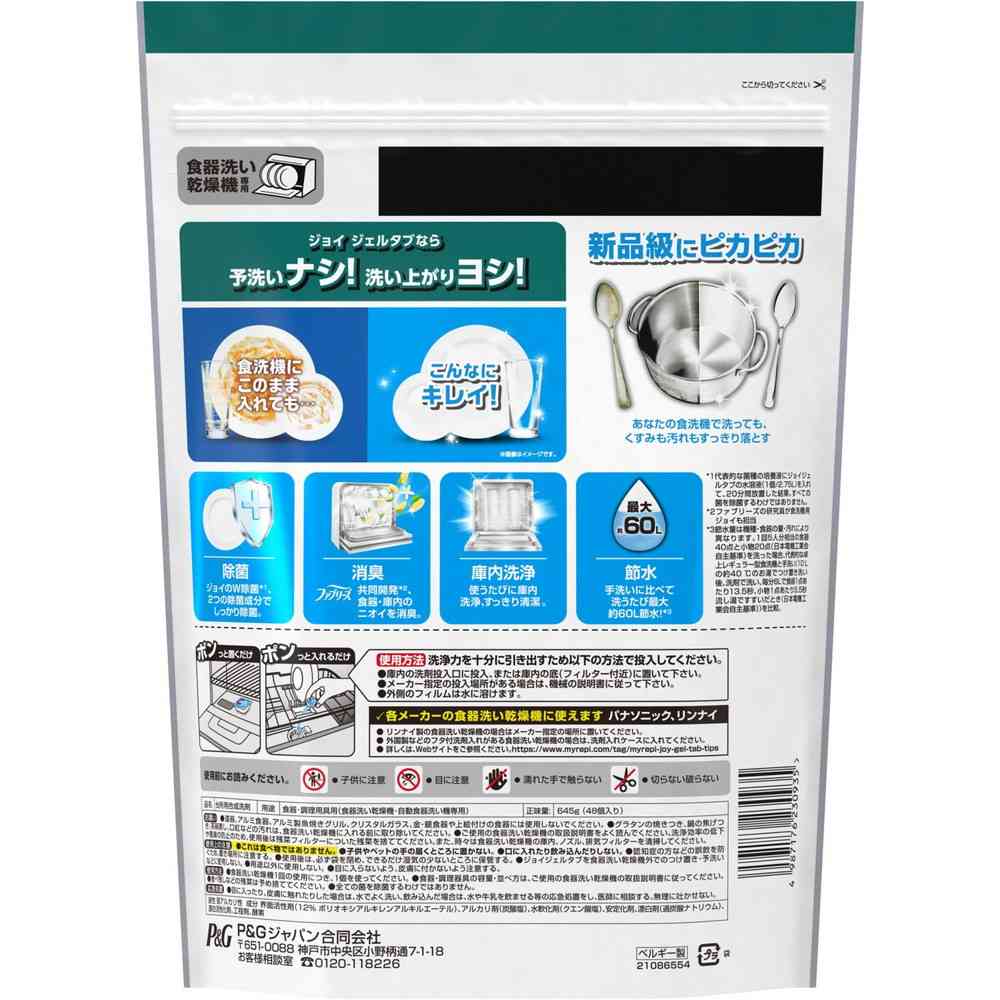 P&G、ピーアンドジー、ジョイ、JOY、じょい、PRO、PRO洗浄、プロ洗浄、プロ、食器用洗剤、食洗、食器洗い、食器、洗剤、お皿洗い、皿洗い、キッチン洗剤、キッチン、台所洗剤、台所、食洗機、自動食洗器、食洗機用洗剤、ジェルタブ、ジェルタブクリスタル、入れるだけ、特大、大容量