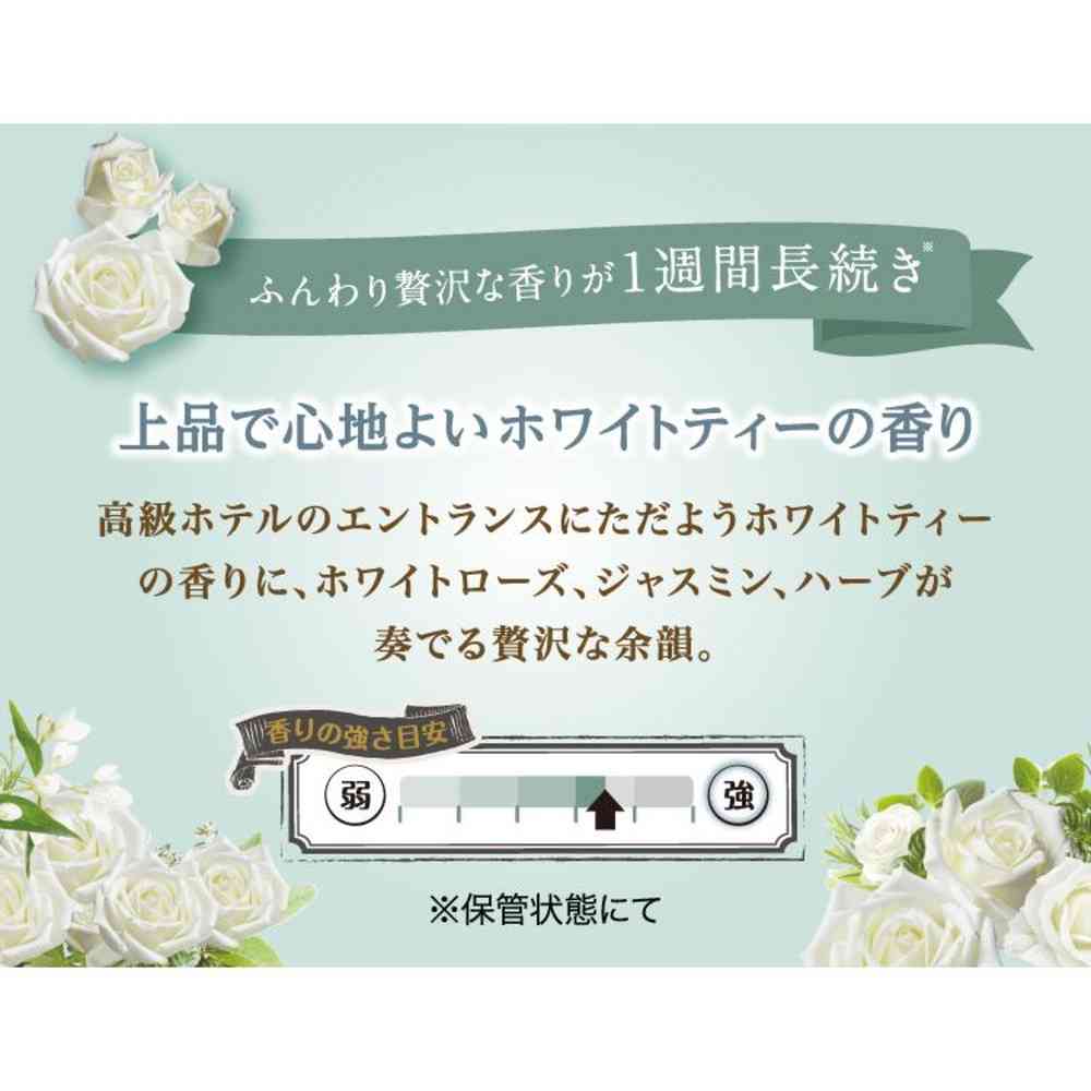 高級ホテルタオルのような、ふわふわシフォンにヨレ・毛玉も防ぐ! 高級ホテルのエントランスにただようホワイトティーの贅沢な香り。