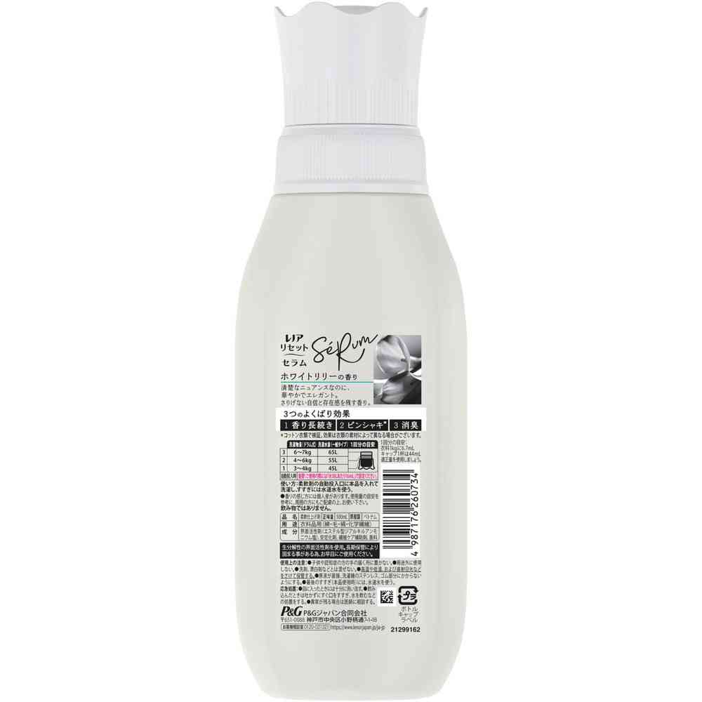 P&G、P&Gジャパン、P&Gジャパン合同会社、ピーアンドジー、レノア、リセットセラム、柔軟剤、ソフナー、香りづけ、洗濯、洗濯洗剤、本体、ボトル、ホワイトリリー、ホワイト、リリー、香り