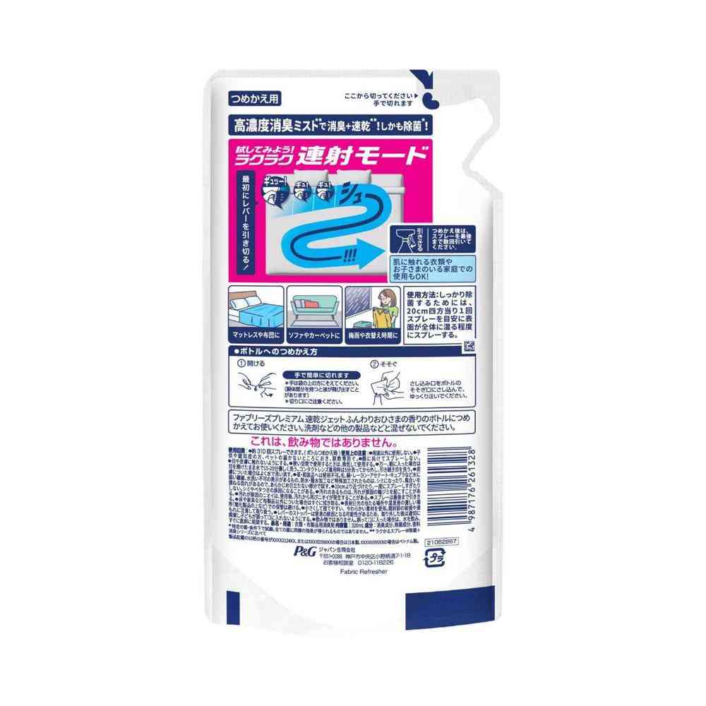 P&G、P&Gジャパン、P&Gジャパン合同会社、ピーアンドジー、ファブリーズ、お部屋用、衣類、コート、制服、ソファ、カーペット、家具、布用、除菌、消臭、防臭、抗菌、脱臭、芳香剤、スプレー、ミスト、速乾、ジェットスプレー、詰替、詰替え、詰め替え、レフィル、入替、中身