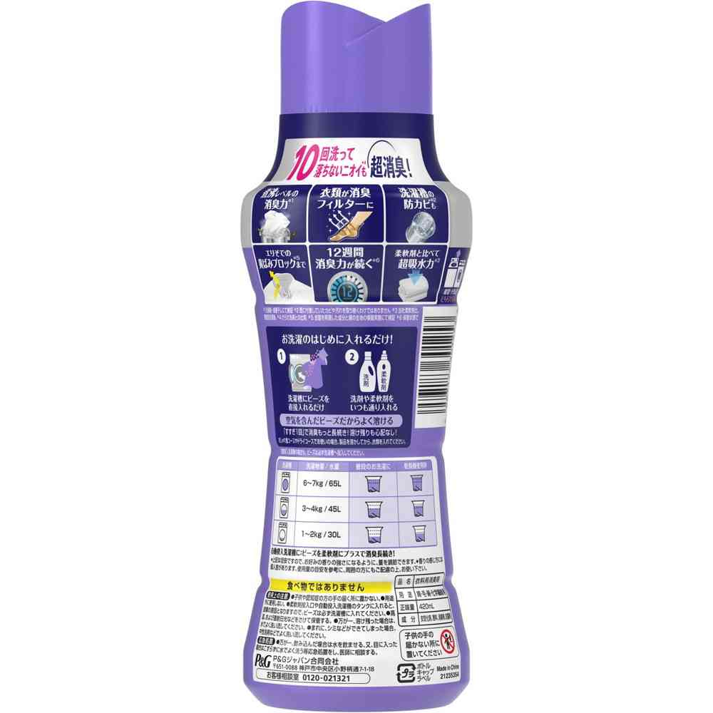 ●子供や認知症の方の手の届く所に置かない。 ●用途外に使用しない。 ●柔軟剤投入口や自動投入洗濯機のタンクに入れると故障の原因となりますので、ビーズは必ず洗濯槽に入れてください。 ●高温、および直射日光などをさけて保管する。