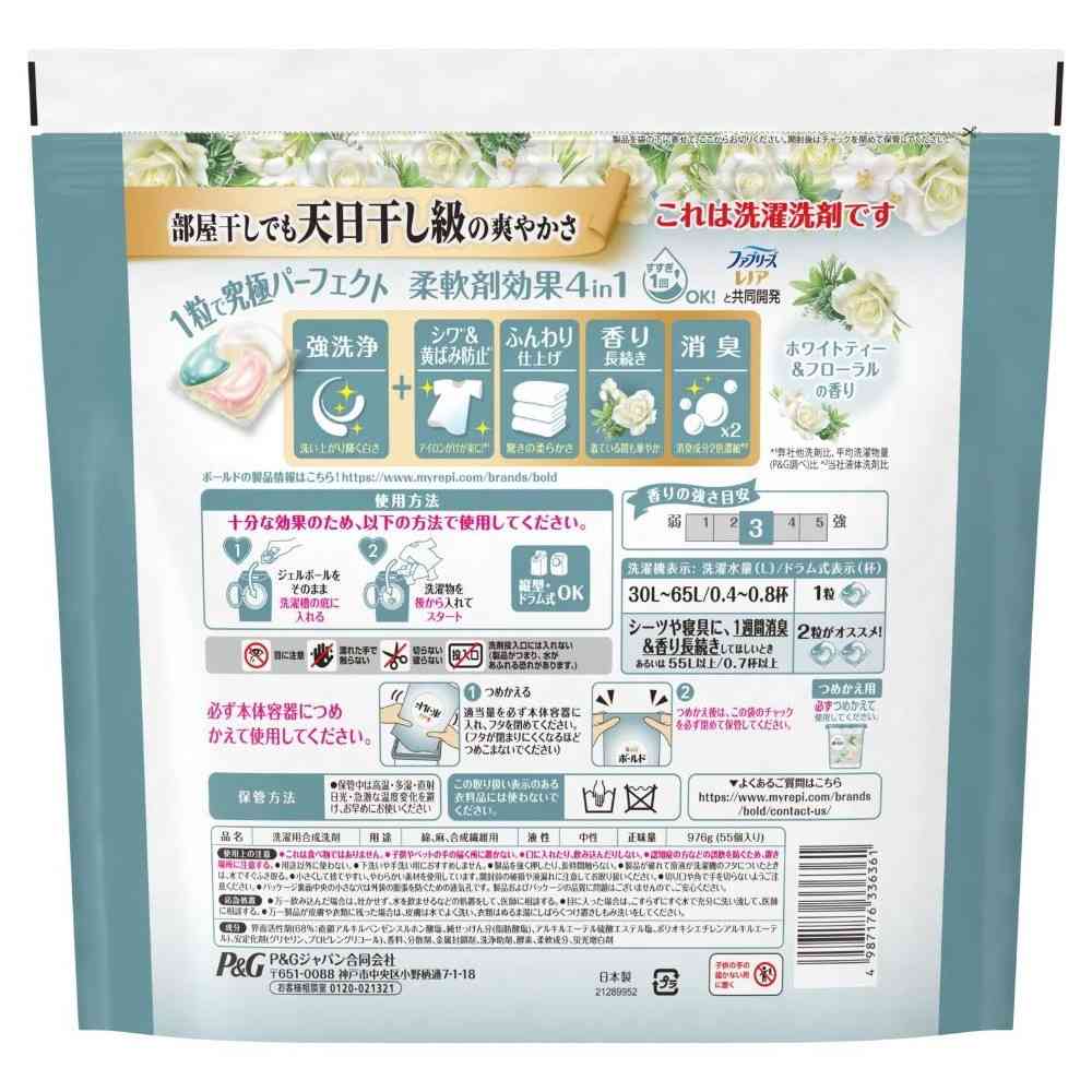 P&G、P&Gジャパン、P&Gジャパン合同会社、ピーアンドジー、ボールド、ジェルボール、ホワイトティー、フローラル、洗濯、洗濯洗剤、柔軟剤、柔軟剤入り、洗浄、除菌、消臭、芳香、入れるだけ、固形洗剤、時短、詰め替え、つめかえ、詰替え、レフィル
