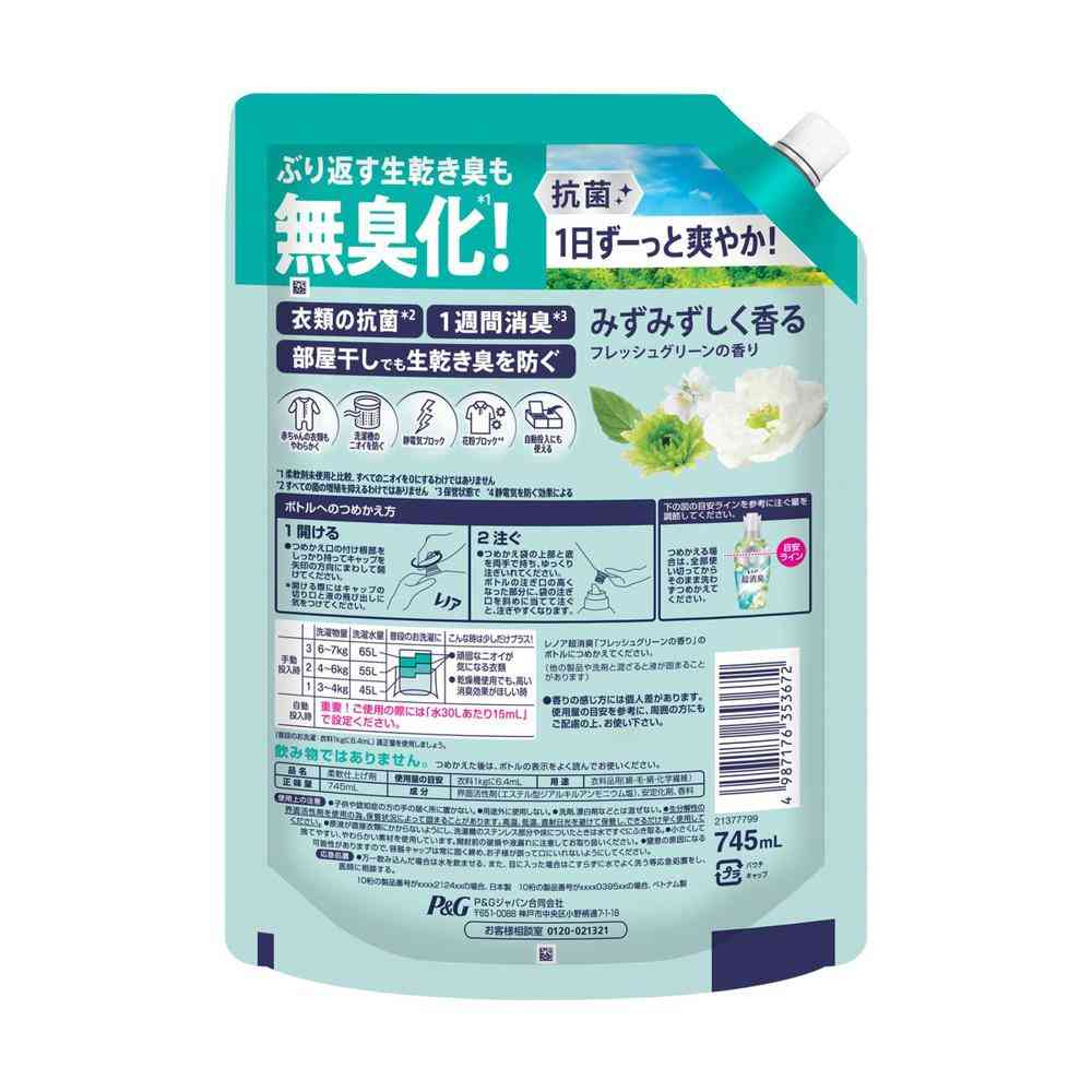 P&G、P&Gジャパン、P&Gジャパン合同会社、ピーアンドジー、レノア、柔軟剤、ソフナー、洗濯、洗濯機、タオル、衣類、洋服、ふわふわ、芳香、香り、消臭、除菌、つめかえ、詰め替え、詰替、レフィル、大容量、お徳用