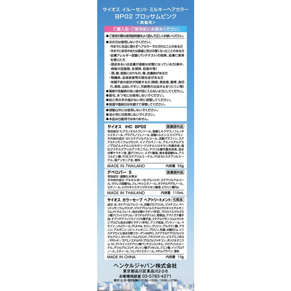 ワンメイクで透明感のある染め上がりと色落ちまでキレイに楽しめる「サイオス、イルーセント」。 日本人の髪のために開発したイルーセントカラー処方が、染料をしっかり髪の芯まで届け、透明感のある柔らかい髪色に。 サロンの技術を取り入れたカラーロックテクノロジー。 透明感をキープしながら髪色がゆっくり落ちるから、髪色の変化もキレイに楽しめる。 カラーセーブヘアトリートメント付きで、ダメージを補修し染料の流出を防ぐ。