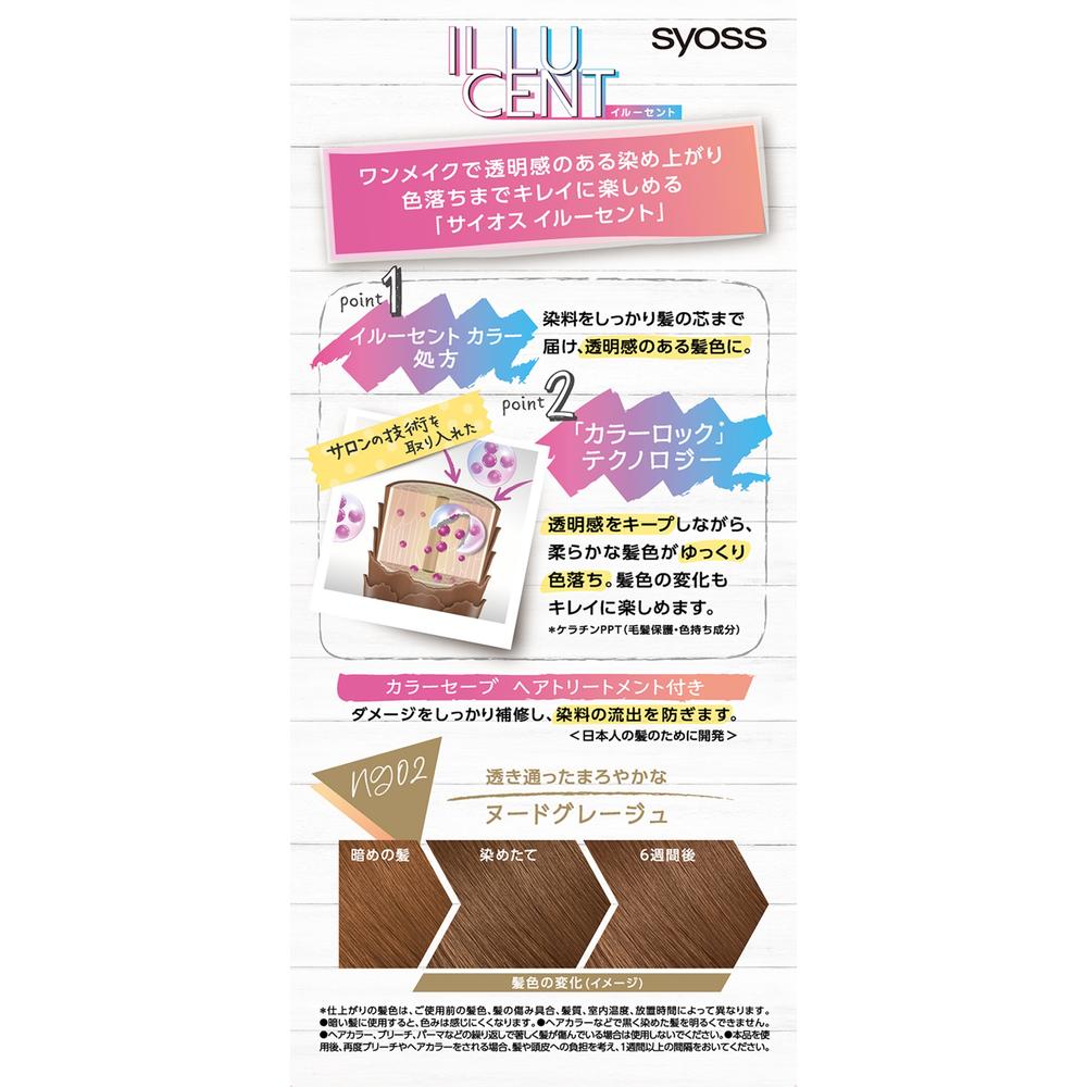 ワンメイクで透明感のある染め上がりと色落ちまでキレイに楽しめる「サイオス、イルーセント」。 日本人の髪のために開発したイルーセントカラー処方が、染料をしっかり髪の芯まで届け、透明感のある柔らかい髪色に。 サロンの技術を取り入れたカラーロックテクノロジー。 透明感をキープしながら髪色がゆっくり落ちるから、髪色の変化もキレイに楽しめる。 カラーセーブヘアトリートメント付きで、ダメージを補修し染料の流出を防ぐ。