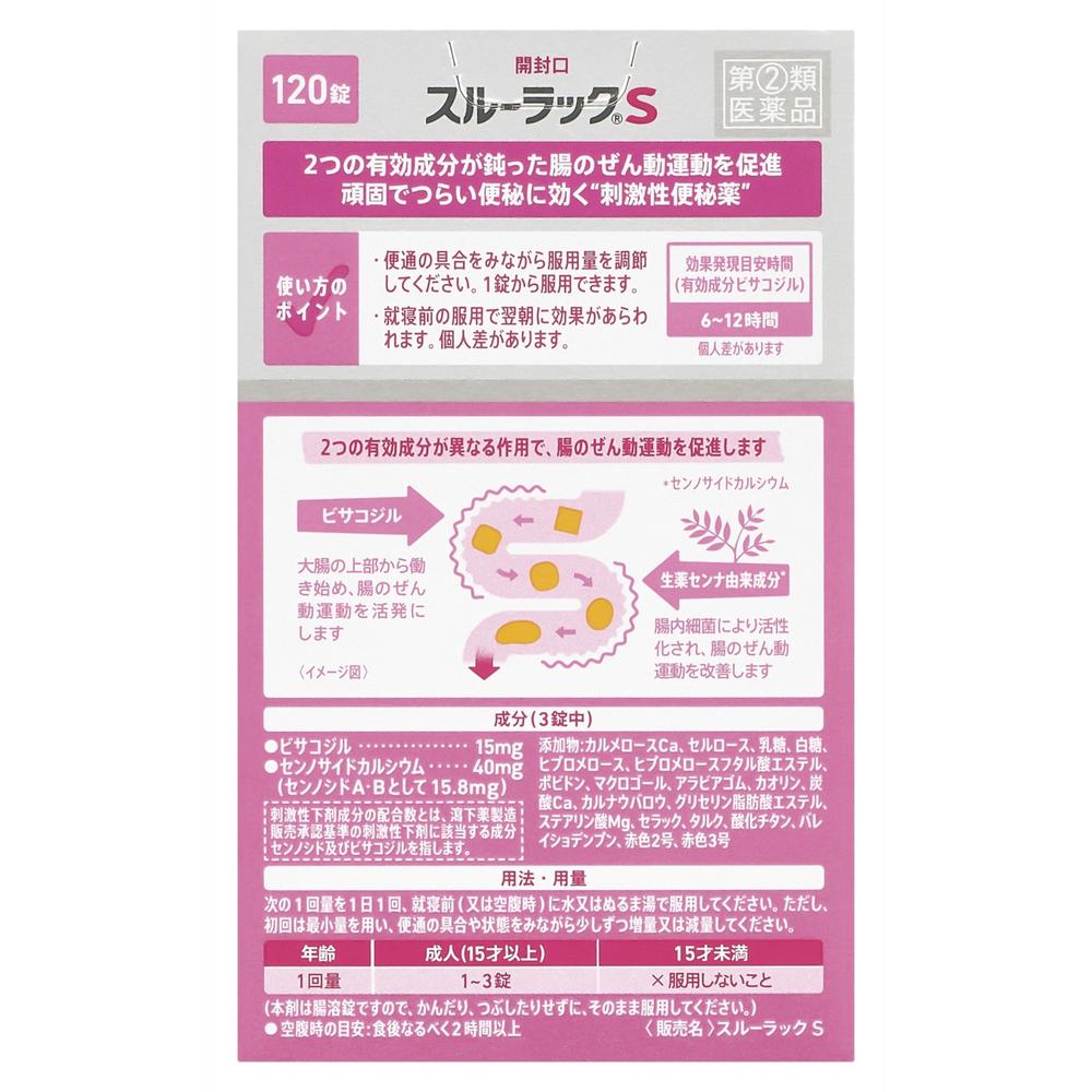 ●スルーラックSは、腸の動きを助ける有効成分を2種類配合しています。