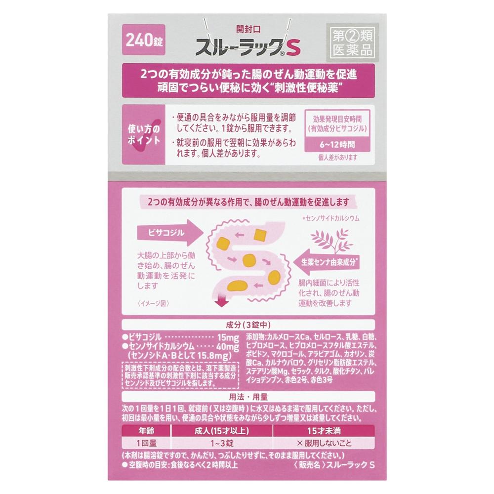 ●スルーラックSは、腸の動きを助ける有効成分を2種類配合しています。