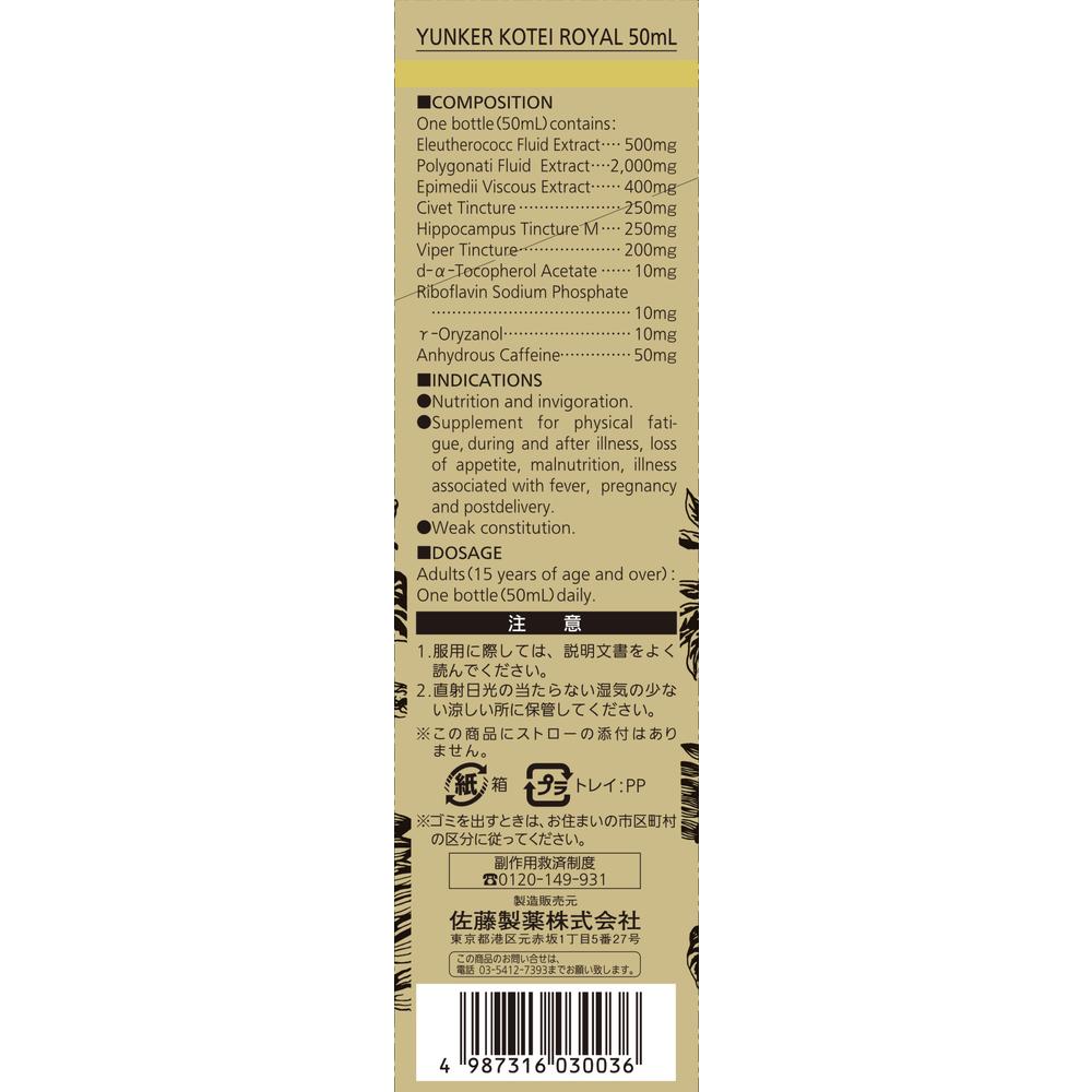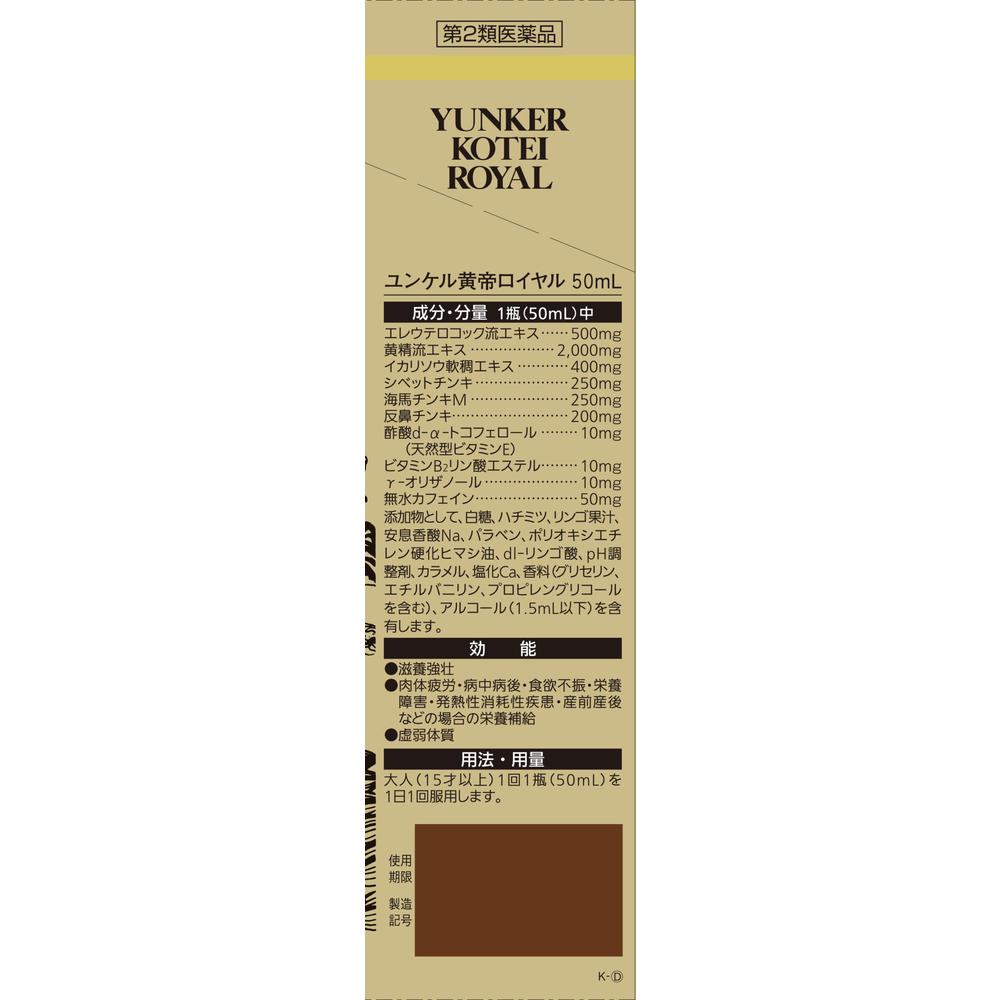ユンケル黄帝ロイヤルは、エレウテロコック、黄精、海馬などの6種類の生薬にビタミンなどを配合したドリンクです。