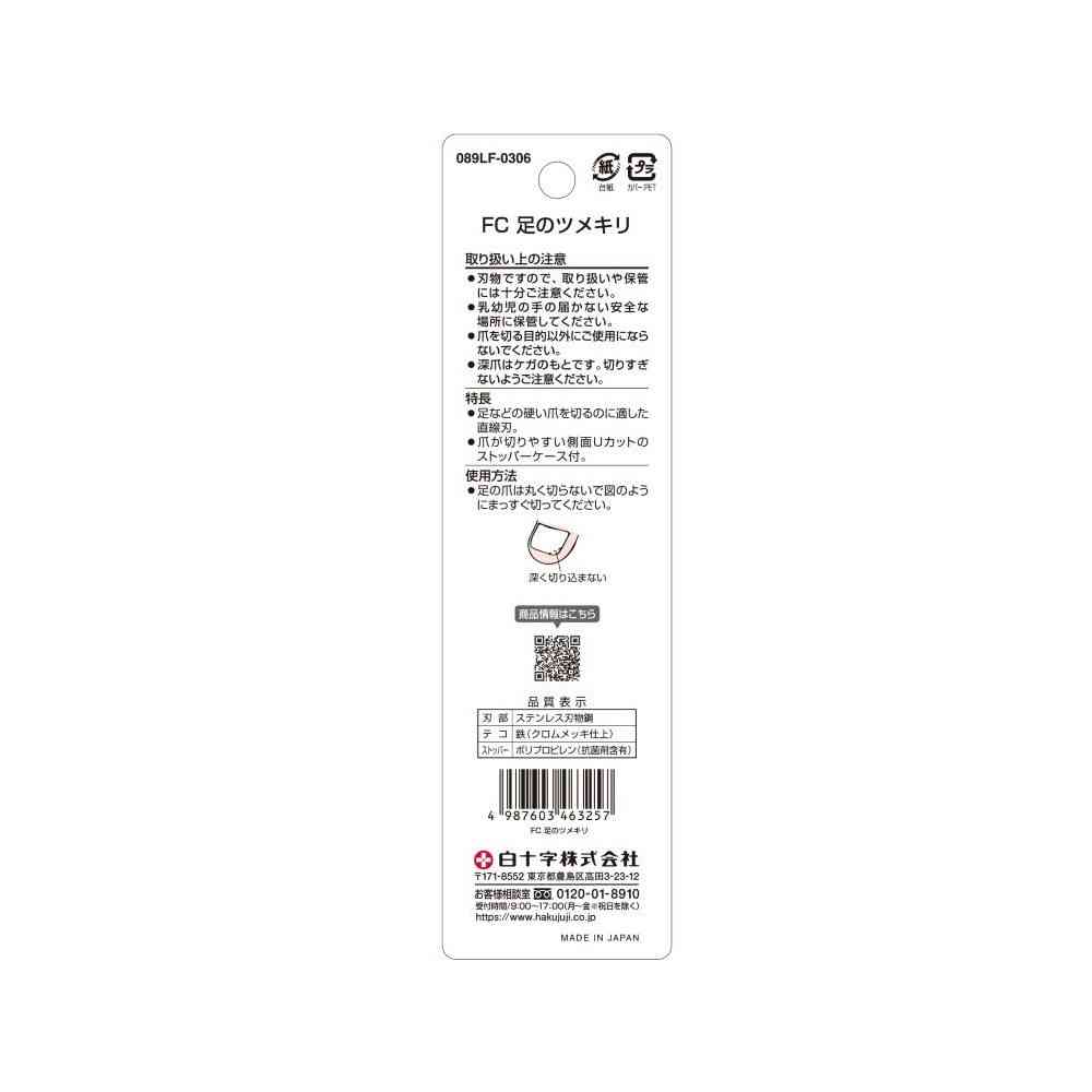 - > 白十字 FC 足のツメキリ 特殊直線刃 1個