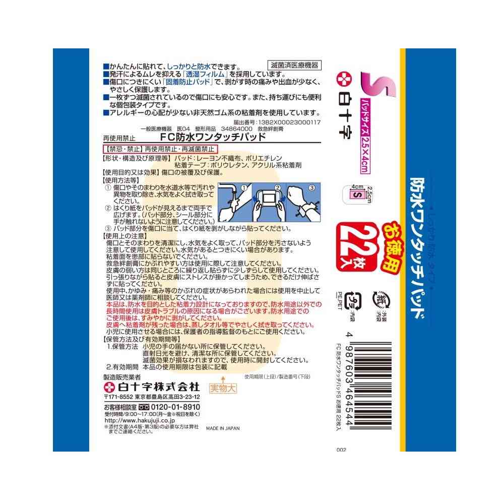 - > 白十字 FC 防水ワンタッチパッド S お徳用 22枚