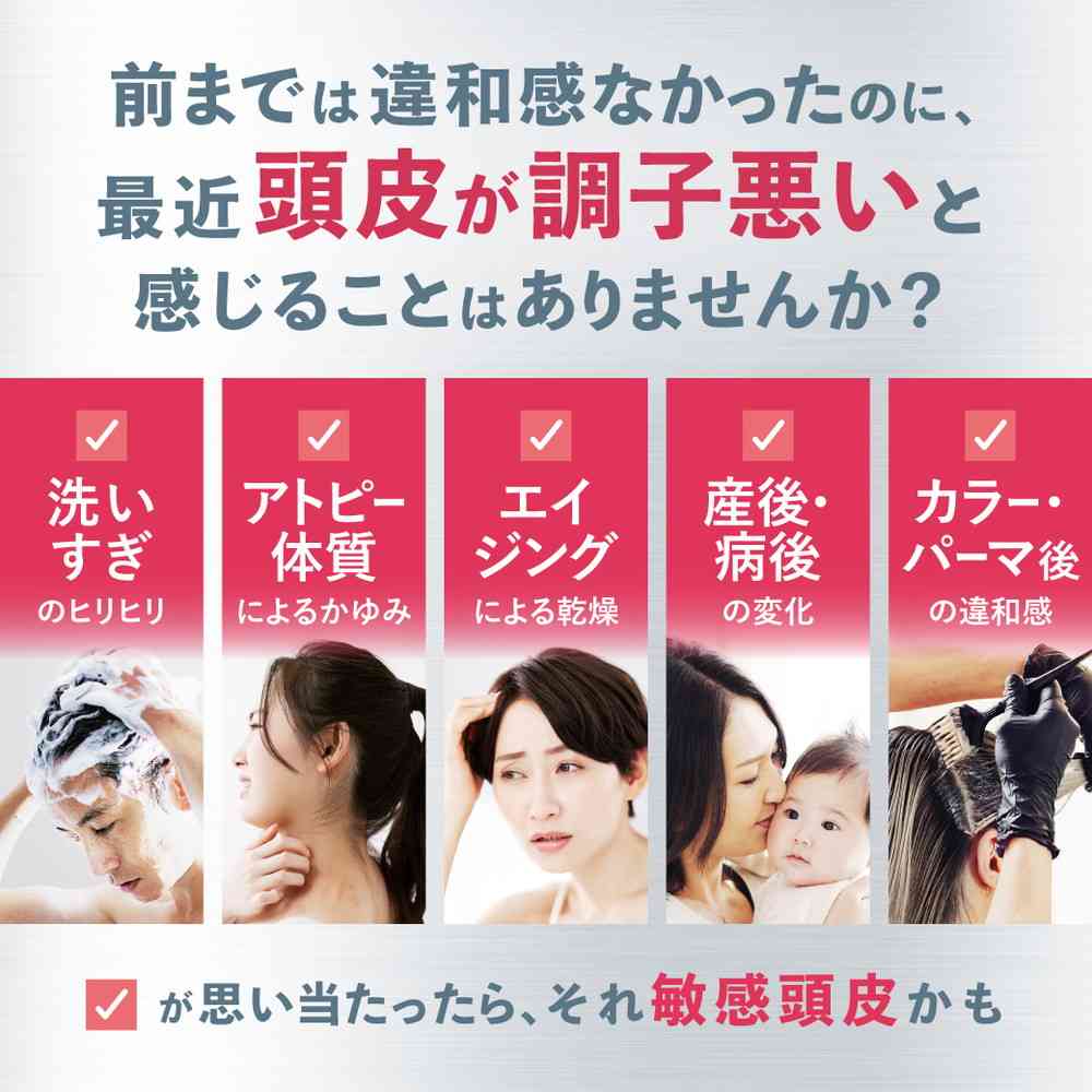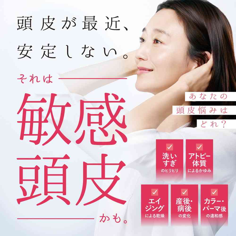 敏感な頭皮をいたわるシンプル処方。 アミノ酸系洗浄成分配合で皮脂を落としすぎず、頭皮のうるおいを保ちます。 すすぎ落ちがよく、肌にトラブル要因を残しにくい設計。 フリー処方(エタノールフリー、シリコーンフリー、高級アルコール系洗浄成分フリー、無香料・無着色)低刺激性(パッチテスト、敏感肌パッチテスト、ノンコメドジェニックテスト、アレルギーテスト、眼刺激性試験実施済み)