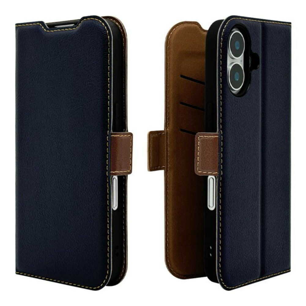 iPhone16、ケース、カバー、手帳型、薄型、耐衝撃吸収、カード入れ、スタンド機能、slim、Fit、サイドマグネット、ネイビー×ブラウン、アイフォン、スマホケース、8080IP461BSMNVB