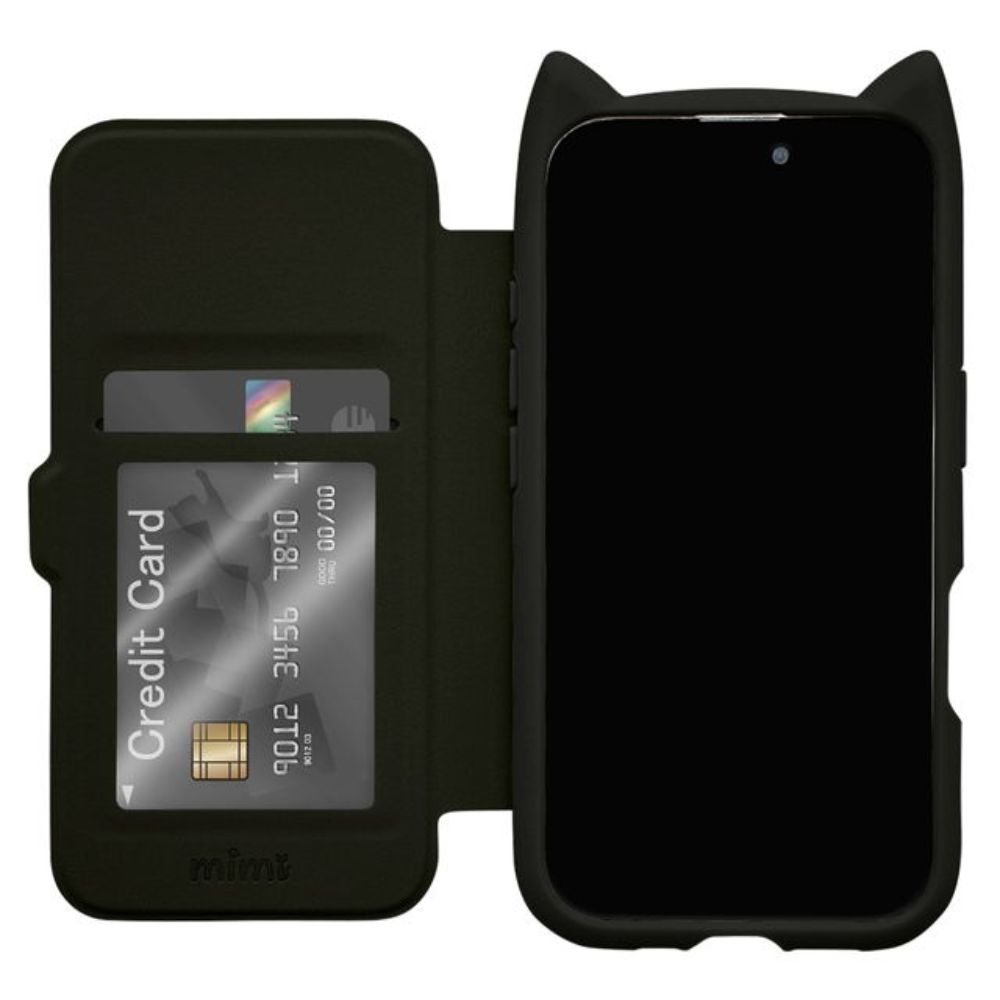 iPhone16、ケース、カバー、手帳型、ハイブリッド、フタ付き背面ケース、mimi、猫耳、ネコミミ、耐衝撃吸収、MIL規格、背面クリア、TPUバンパーケース、カード入れ、ブラック、アイフォン、スマホケース、8101IP461BHPBK