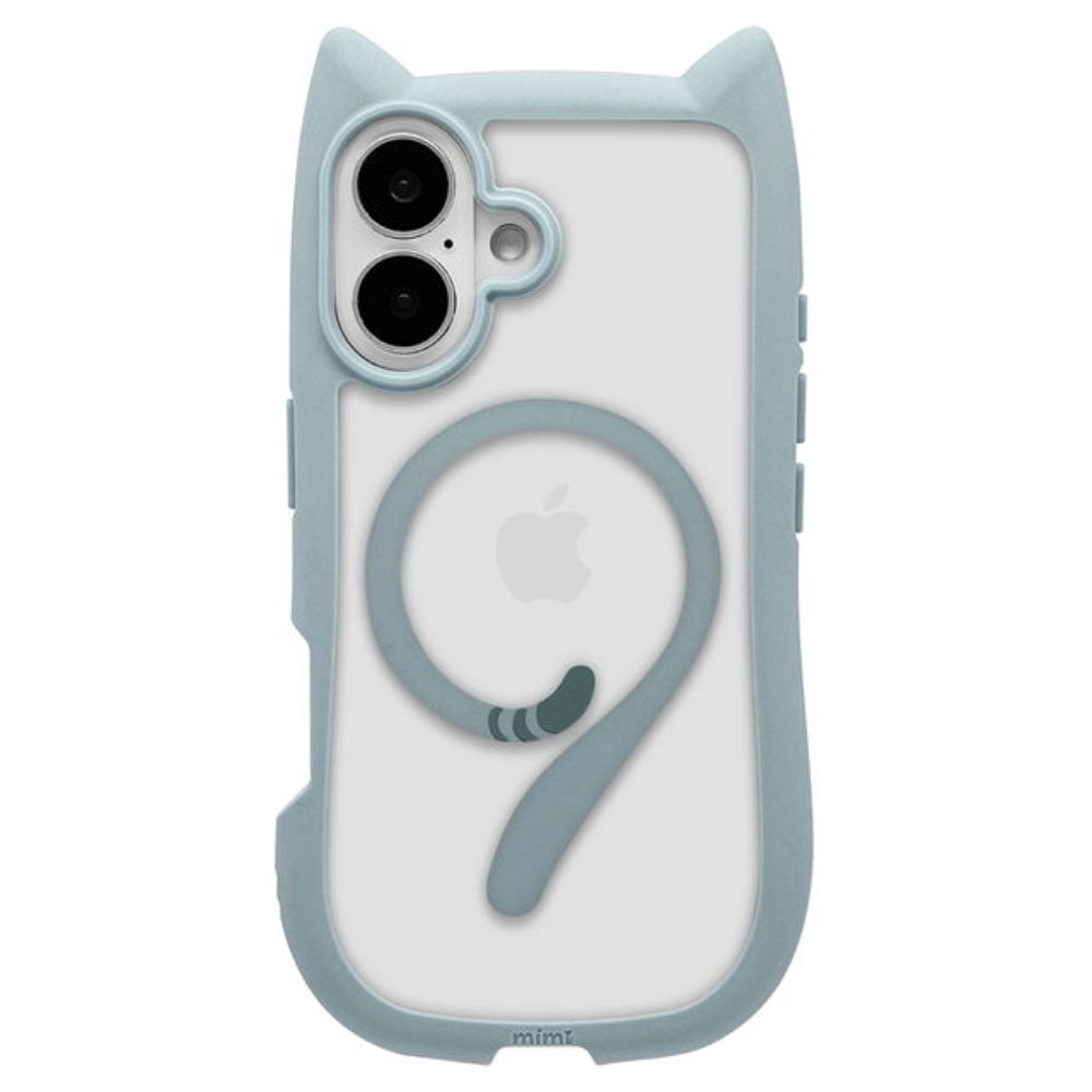 iPhone16、ケース、カバー、ハイブリッド、MagSafe対応、mimi、猫耳、ネコミミ、ねこみみ、耐衝撃吸収、MIL規格、背面クリア、TPUバンパーケース、ワイヤレス充電対応、スモーキーブルー、アイフォン、スマホケース、8150IP461HPMSBL