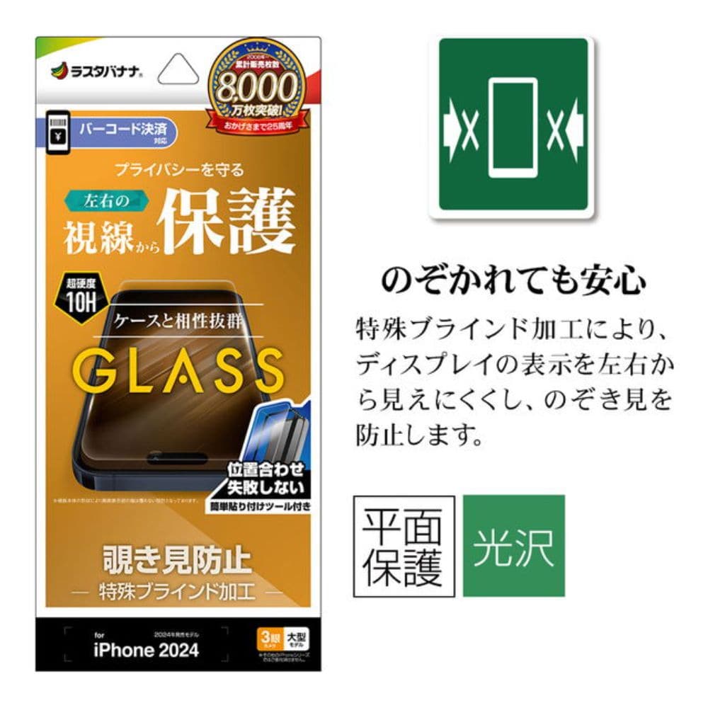 iPhone16ProMax、ガラスフィルム、Pro、Max、平面保護、のぞき見防止、覗き見防止、左右、0.33mm、硬度10H、簡単貼り付け、アイフォン、保護フィルム、GST4485IP467P
