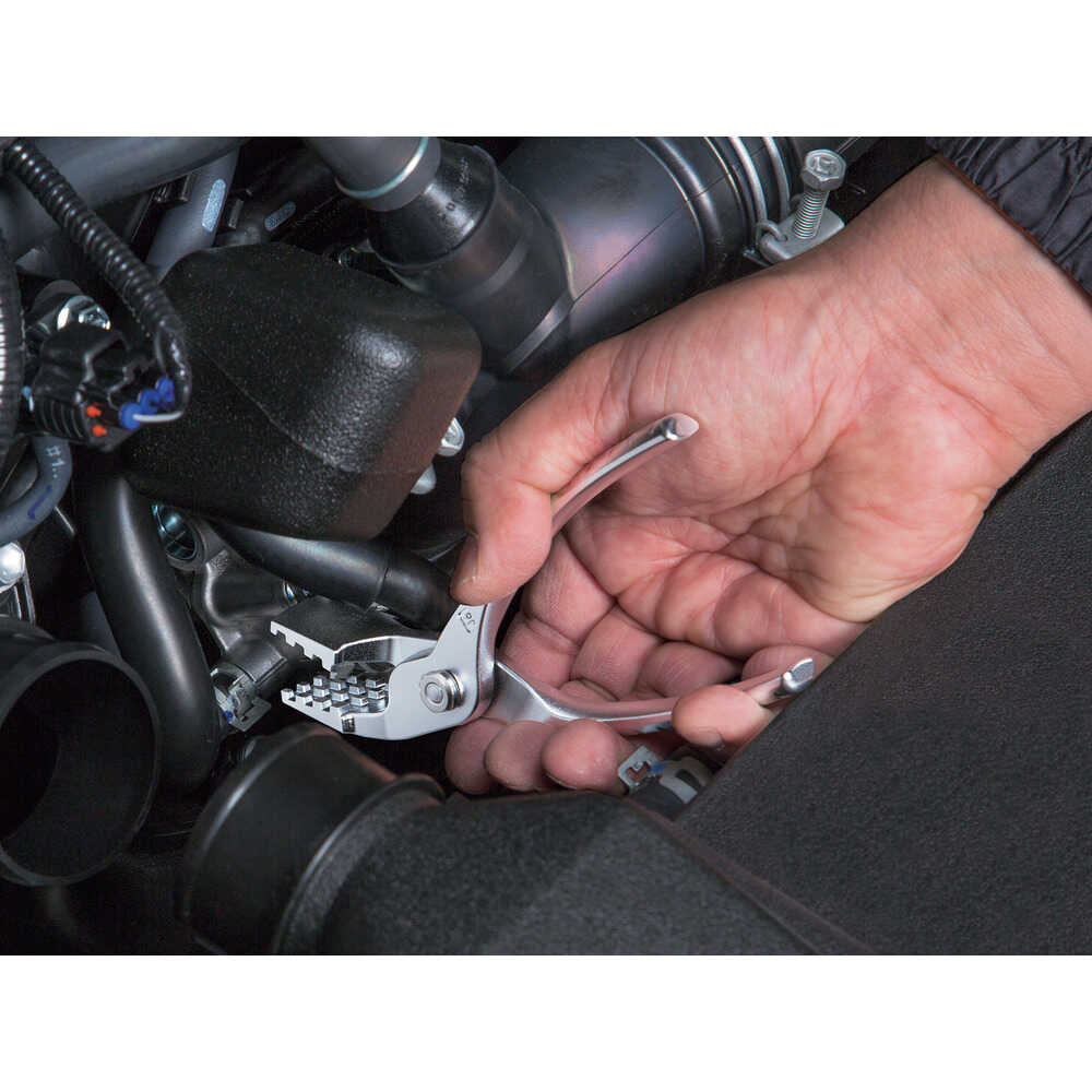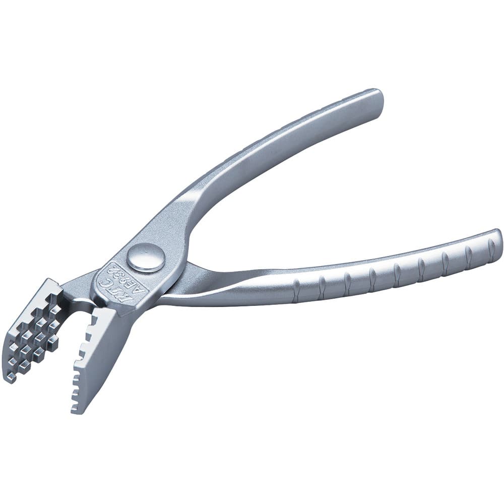●歯は碁盤目状の山形エッジなので、くわえたホースクリップが滑らず外れにくく、狭い所や奥まった所でも使用できます。●歯部は台形形状で、建・横・斜めとあらゆる方向で使用できます。●グリップにはすべり止め加工を施してあります。少しでも狭い所に手が入るよう、樹脂カバーはあえて非装着にしています。●AE931よりグリップ、歯部ともにコンパクトとなっています。●先端を35°角度をつけることで、パイプやステーを避けて奥まで差し込み、作業が可能です。●ホース外径φ10~47mmに使用される板バネ式ホースクリップ用です。●全長(mm):163●口開き(mm):45●全高(mm):25 質量225.000g
