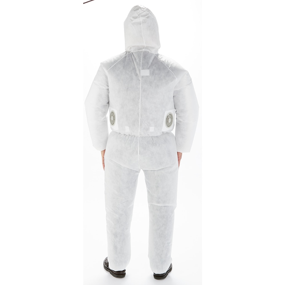 ●空調服[[R下]]のファンが取り付け可能な使い捨て保護服です。●ポリプロピレン(PP)スパンボンド不織布の上にフィルムラミネートを施し、防水性に優れています。●「空調服」は(株)セフト研究所・(株)空調服の商標及び登録商標です。●「空調服」は(株)セフト研究所・(株)空調服のファン付きウェア、その附属品、及びこれらを示すブランドです。●色:ホワイト●サイズ:LL●着丈(cm):174●胸囲(cm):135●肩幅(cm):52●袖丈(cm):65●適合胸囲(cm):92~112●適合身長(cm):164~182●ファン取付用の穴あき仕様●袖口・裾口・背ウエストゴム入り 質量208g