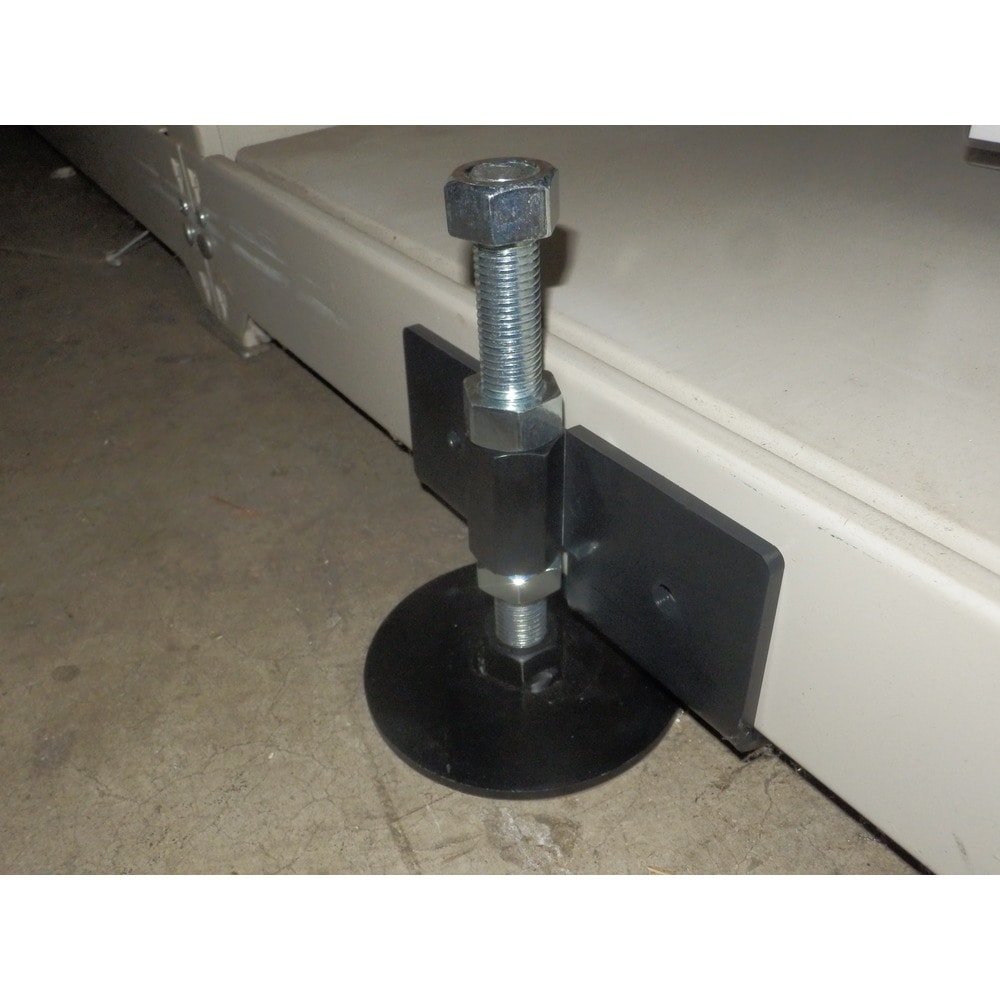 ●強力接着パッド使用で穴あけ工事不要なフレームホルダーです。●レベルアジャスター固定が困難な工場設備・装置の転倒・移動を防止する製品です。●床に接着した円盤に連結されたL板で設備・装置の底面を接着固定します。●円盤は接着固定の為、アンカーのように床面を傷つける穴あけ工事が不要で取り付けの際に機器を動かす必要がありません。●取り外した場合も跡が残りません。●高さ調整範囲(mm):50~60●本体寸法(mm)幅×長さ×厚さ:154×120×135 質量2.3kg