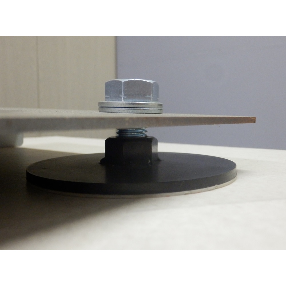 ●工場設備・装置の移動を防止する製品です。●対象物に予め開いているアンカーボルト取り付け用穴に六角ボルトを通し、床面に強力接着した円盤と接続して使います。●アンカーボルト設置のような床への穴あけ工事をすることなく、底面を接着固定します。●高さ(mm):32●径(mm):100 質量760g