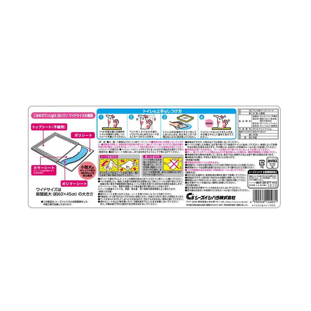 袋からシートを取り出すときは、シートを傷つけないようにご注意ください。 本製品をハサミ等で切らないでそのままご使用ください。中身のこぼれや尿モレの原因となります。 ペットがまわりを汚してしまうことがあるので、汚れてもかまわない場所に敷いてください。 濡れたシートの上に物を置いたり、不織布面を下にしたまま放置しないでください。 また不織布面で汚れた部分や水分等を拭かないでください。 紙製品ですので、火気の近くでは使用しないでください。 シートに付着した大便は、必ず取り除いてご家庭のトイレに始末してください。地域によって処理方法が異なる場合があります。その際には、お住まいの地域のルールに従って処理してください。 本製品は食べられません。ペットが噛んだり食べたりしないよう注意してください。 万一、誤って人やペットが飲み込んだり、中身が目に入った場合は、医師や獣医師にご相談ください。 伸縮性のある素材を使用しているため、表示寸法と実際の寸法とは若干異なる場合があります。 本製品の仕様は、予告なく変更することがあります。