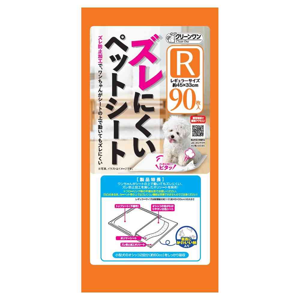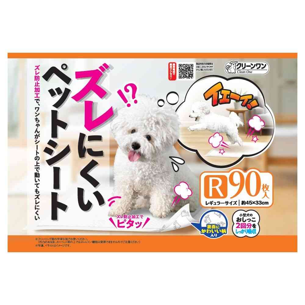 ワンちゃんがシートの上で動いてもズレにくい、ズレ防止加工を施したポリシートを採用! 防滑剤を配合し高い摩擦力によりズレ防止を実現。 使いやすい中厚型タイプ。 小型犬のおしっこ2回分をしっかり吸収