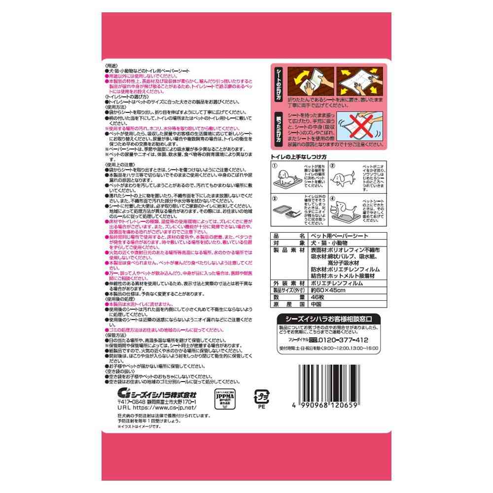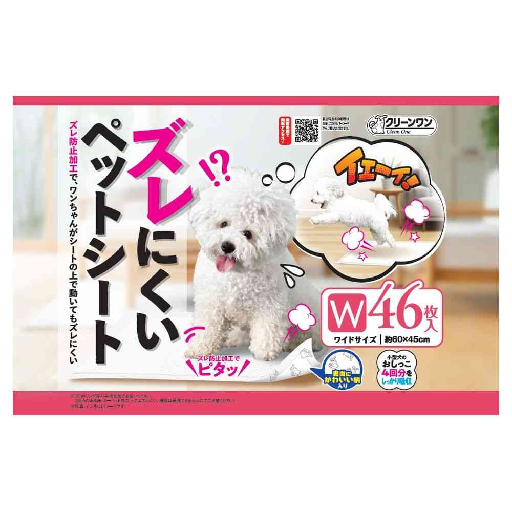 ワンちゃんがシートの上で動いてもズレにくい、ズレ防止加工を施したポリシートを採用! 防滑剤を配合し高い摩擦力によりズレ防止を実現。 使いやすい中厚型タイプ。 小型犬のおしっこ4回分をしっかり吸収