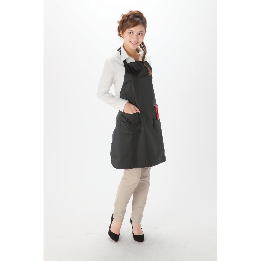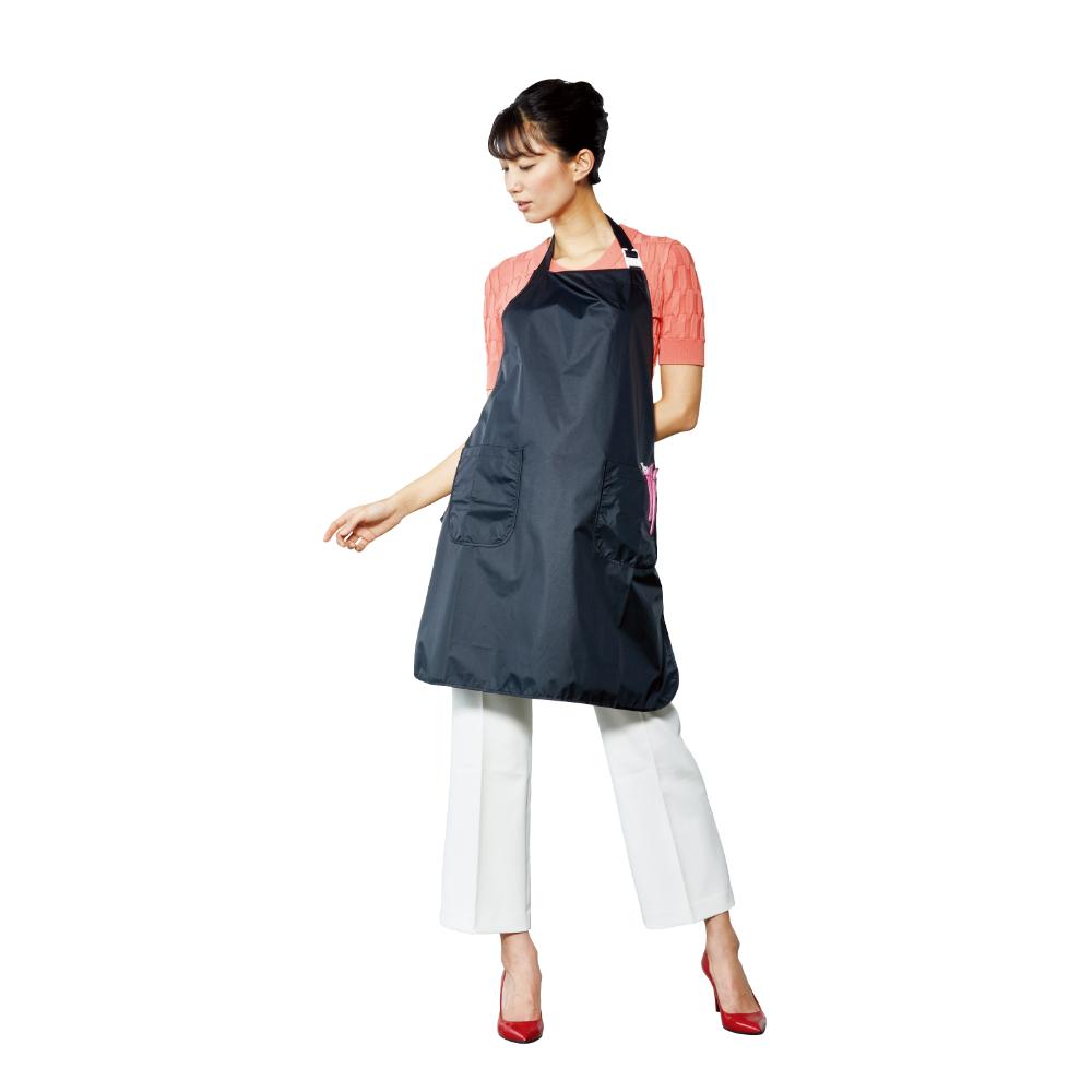 完全防水で軽いので身に着けていてもストレスになりにくい。 理美容室で使用しているシャンプークロスと同じ素材です。前ポケット付き。