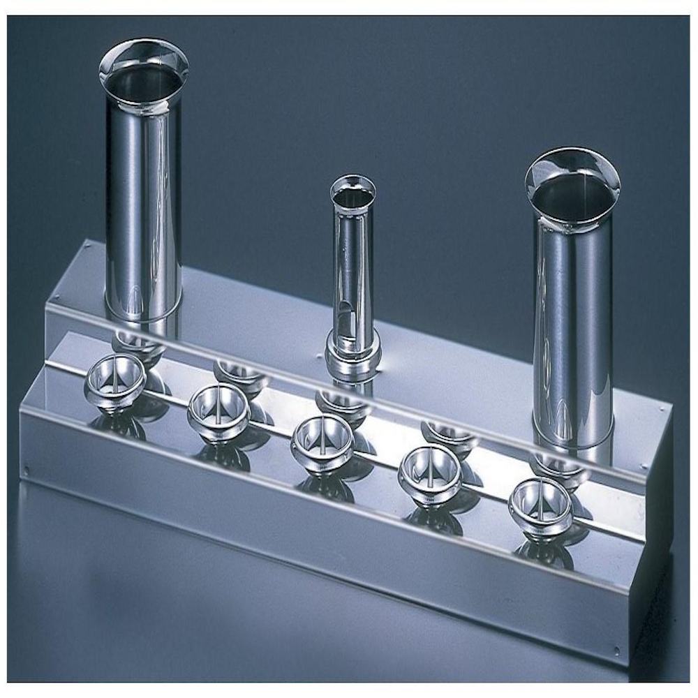 ステンレスのお墓用品 ローソク5本立て・線香立て・花立がついてます。