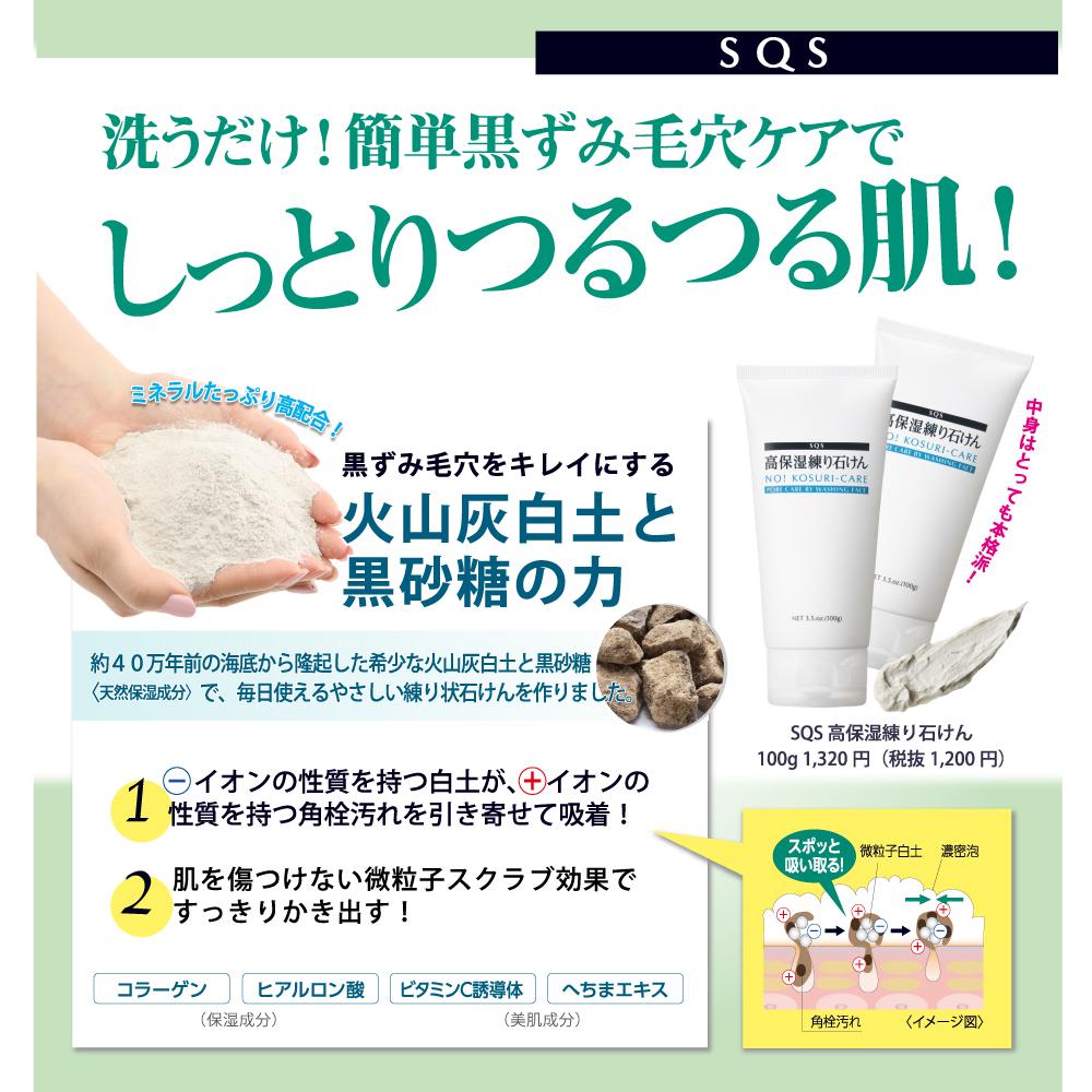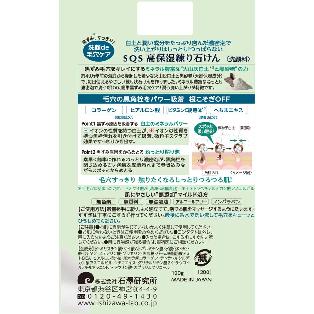 毎日の洗顔で黒ずみ毛穴(※1)汚れを根こそぎ吸着! 白土と潤い成分をたっぷり含んだ濃密泡で洗い上がりはしっとり!つっぱりません。 約40万年前の海底から隆起した希少な火山灰白土(※2)と黒砂糖(天然保湿成分)で、毎日使えるやさしい練り状石けんを作りました。 ミネラル豊富なねっとり濃密泡で洗うだけ。 コラーゲン、ヒアルロン酸、ビタミンC誘導体(※3)、へちまエキスを配合。潤う洗い上がりが特徴です。 ・肌にやさしいマイルド処方(合成色素無添加・無香料・無鉱物油・アルコールフリー・ノンパラベン) ※1 毛穴に詰まった汚れ ※2 ケイ酸Al(洗浄・吸着成分) ※3テトラヘキシルデカン酸アスコルビル
