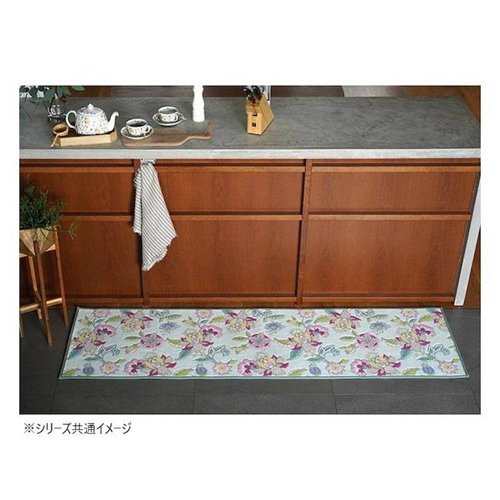 キッチンマット50x150 キッチンマット シンクロナイズハドンフラワー ミントンキッチンマット ハドンホール柄 花柄キッチンマット グリーンキッチンマット おしゃれキッチンマット 国産キッチンマット 北欧風キッチンマット
