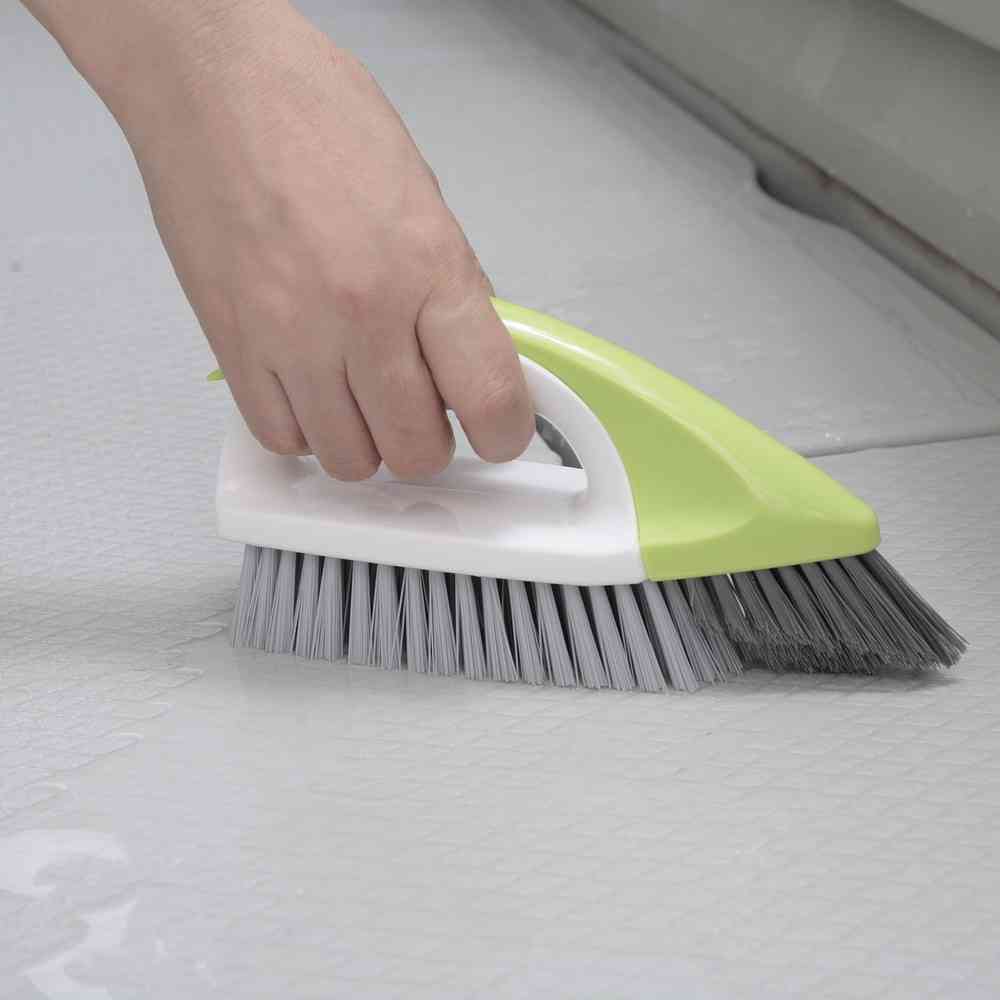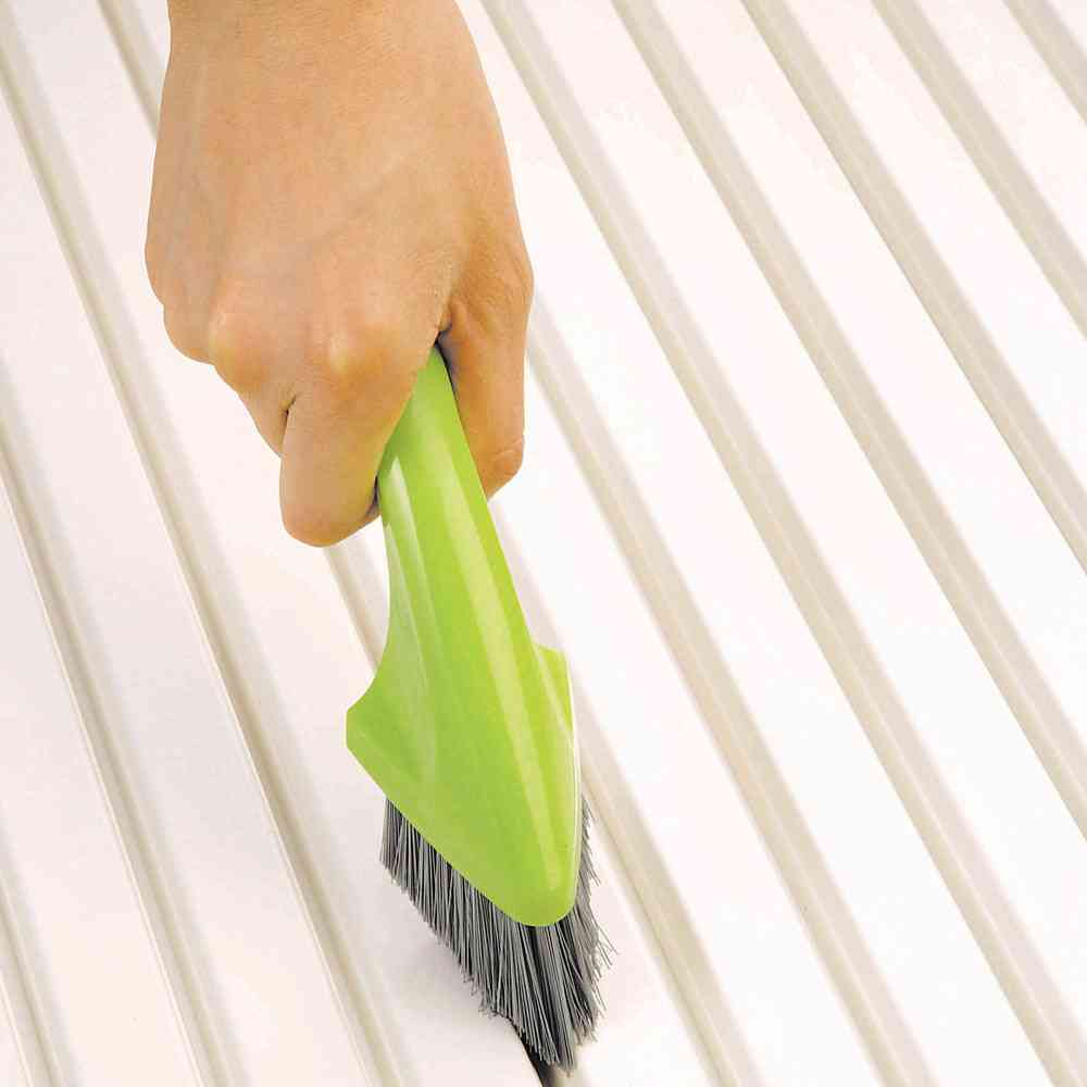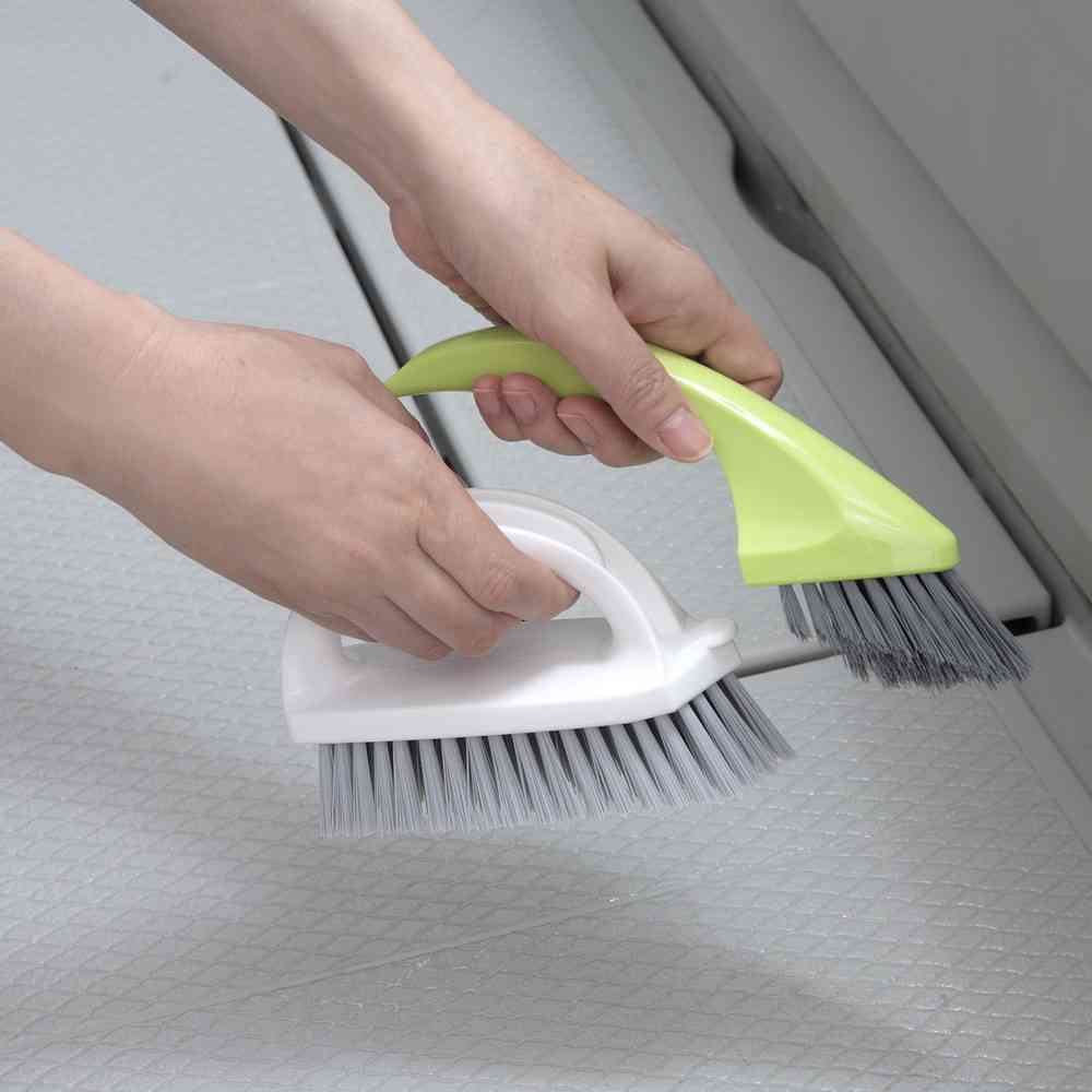大・小ブラシが一つになっているので、使い分けができて便利です。 大きいブラシは床やタイルなど、広い面に最適です。 小さいブラシは毛先をVカットしていますので風呂ブタなど、溝や隙間の掃除に便利です。 また後ろにヘラが付いているので、頑固な汚れもお掃除できます。 ブラシを立てて収納できますので、場所を取らず乾きが早いので衛生的です。