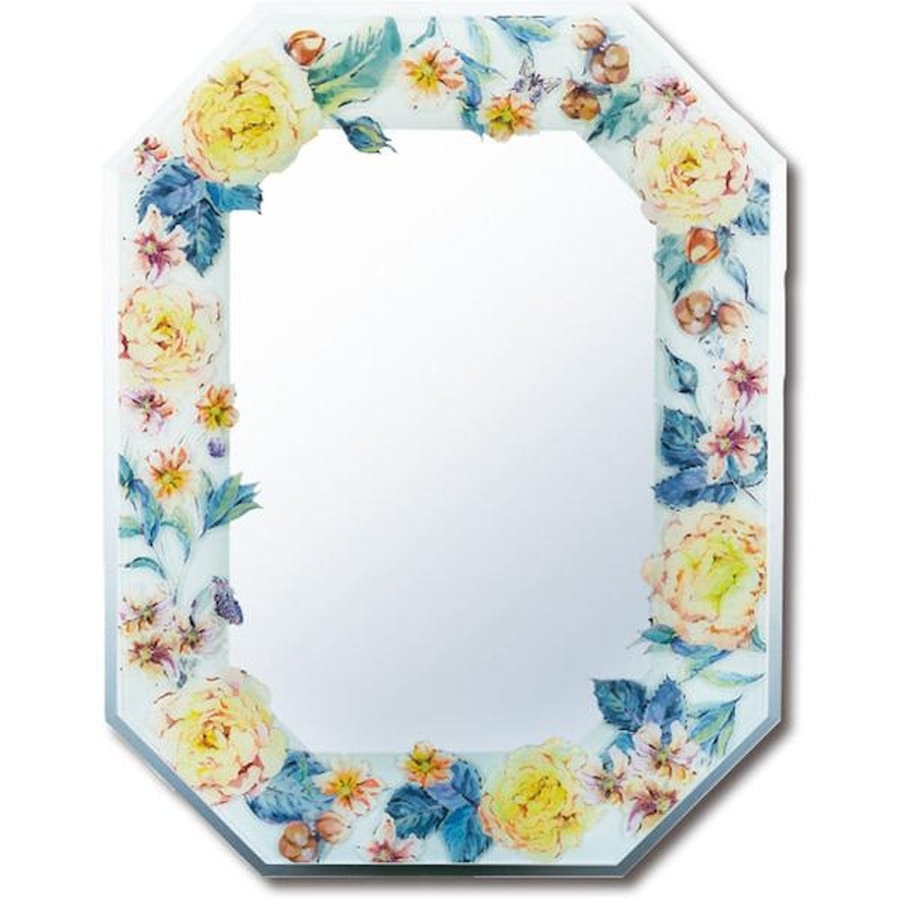 八角ミラー イエローローズミラー 壁掛けミラーおしゃれ デコラティブミラー インテリアウォールミラー アンティーク調ミラー 玄関リビング用鏡 八角形デザイン鏡 エレガントウォールミラー ヨーロピアンスタイルミラー