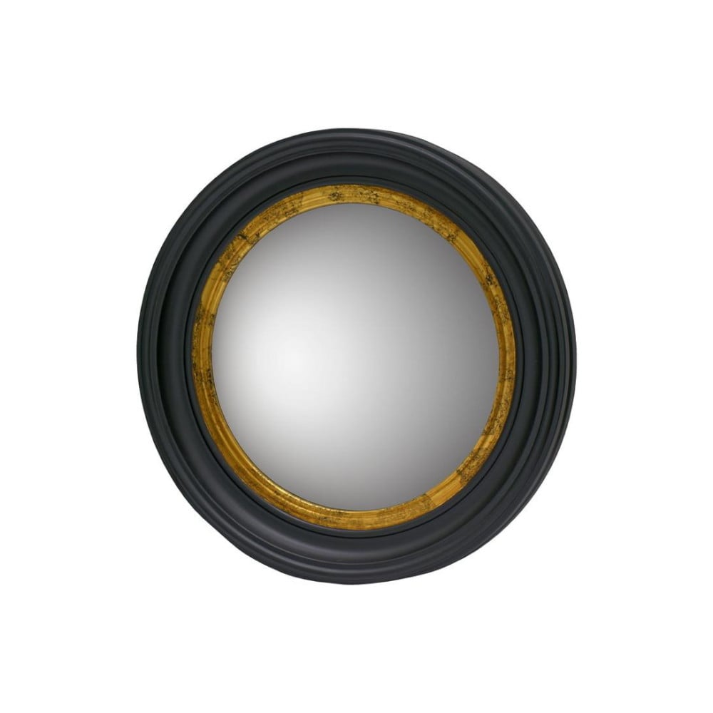 ユニークなミラー マットブラックのフレームとアンティークゴールドのプロフィールで装飾された、凸面鏡を採用したユニークなミラー。ディスプレイやユニークなインテリアプランに最適です。広角に映し出すことが可能なので、モニター用途にも。