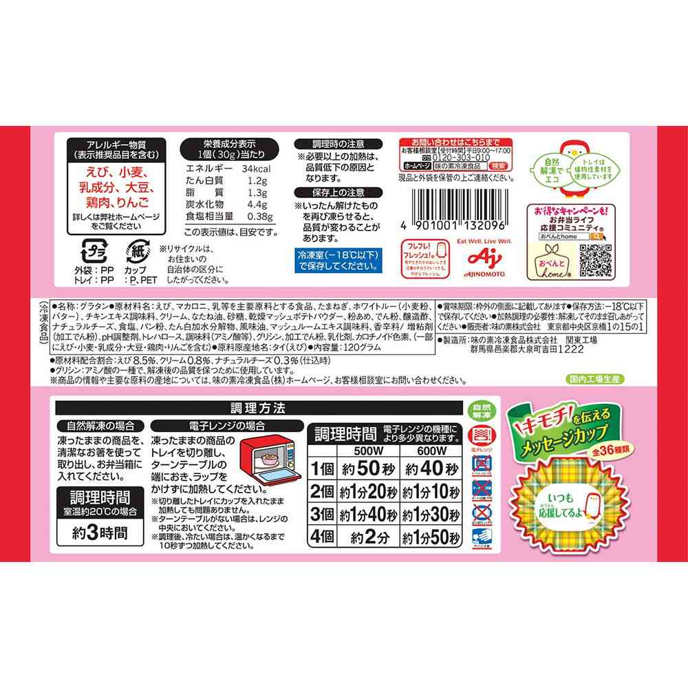 味の素、グラタン、えび、海老、クリーミー、カップ、レンジ、簡単、おつまみ、お弁当、おかず、お手軽、時短、簡単、レンチン、主婦、弁当、惣菜、冷凍