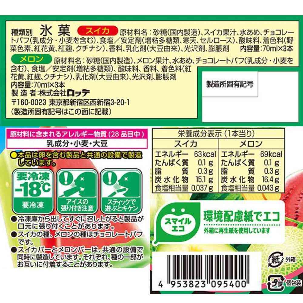 チョコ種入りで、まるでスイカとメロンのような形と食感が楽しい、家族向けマルチアイスバーです。