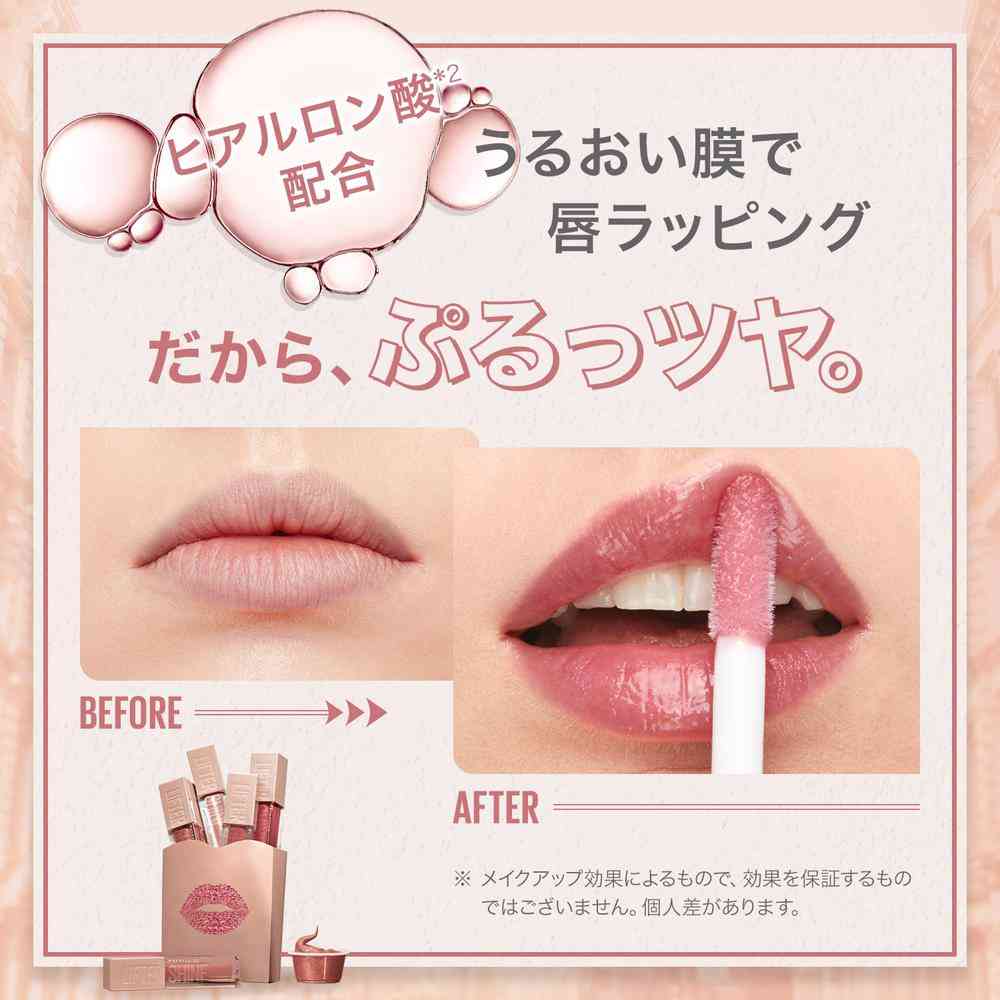 唇ぷるっっツヤ、MAX*! グロスなのに見たまま美発色 ●ヒアルロン酸**配合 うるおい膜で唇ラッピング だから、ぷるっっツヤ、MAX! ヒアルロン酸**配合のこっくりテクスチャがむっちり密着 うるおいとツヤで、唇をぷるっと見せる ●敏感肌でも使える (皮膚科医の協力のもとテスト済) (アレルギーテスト済) *自社製品内比較。SPステイ ヴィニルインク、SPステイ マットインクと比較して。 **ヒアルロン酸Na(保湿成分)
