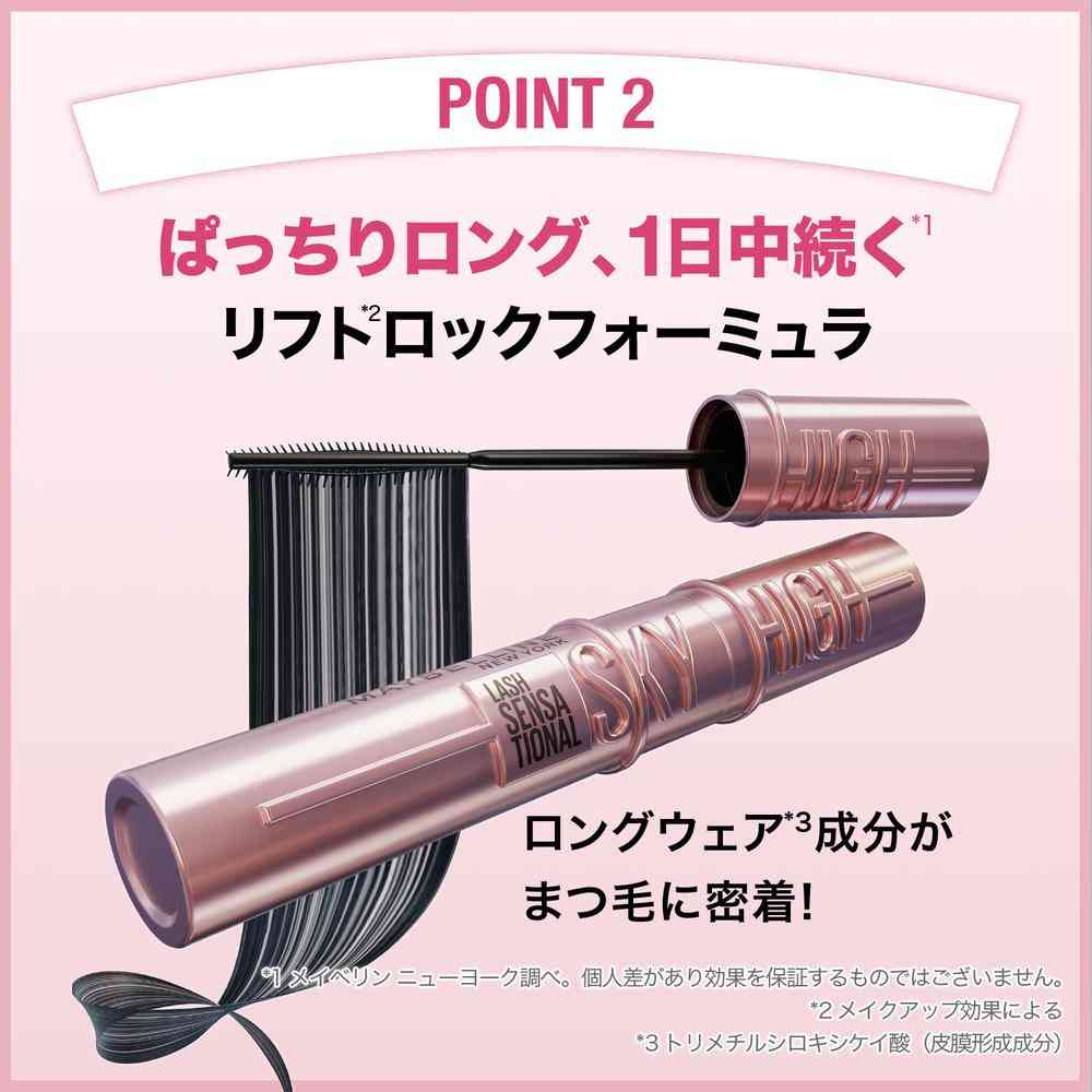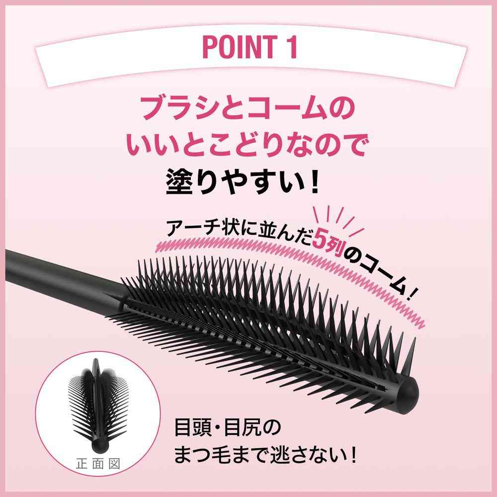 カールを超える新ジャンル、リフトマスカラ登場。 日本人の下向きまつ毛も伸ばしてリフト。 ばっちりロング、1日中続く。