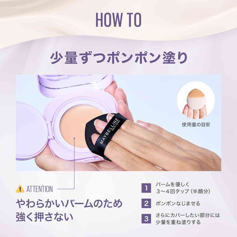 30時間。*スキがないのに、厚塗り感ゼロへ。肌にとけこむような、欲ばりハイカバーファンデーション *メイベリン ニューヨーク調べ。個人差があります。