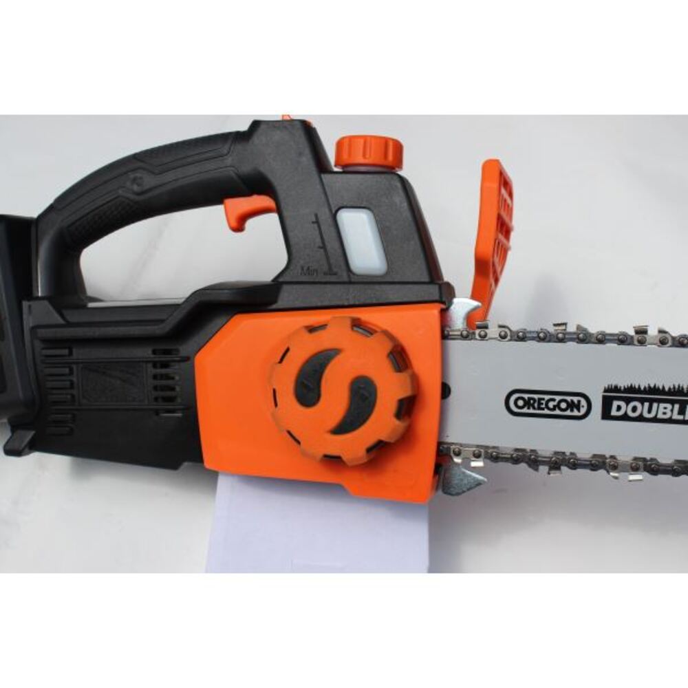●チェーンソー刃先等にはご注意ください。 ●電動チェンソー本体やバッテリーを雨中や湿気の多いところで使用したり放置しないでください。 ●リチウムバッテリーの特性により、保管時などバッテリーを完全に放電させますと、バッテリー寿命が大幅に低下する恐れがあります。 ●切断する樹木の種類により柔らかい枝木や硬い枝木があり、チェーンソーでの切断スピードもそれに比例します。 ●チェーンソーの特長上、ツルの様な柔らかいしなる枝は切り辛くなります。 ●負荷を掛けた時のチェーンソー切断力において電動式とエンジン式との比較では、電動チェーンソーは力強いエンジン式のチェーンソー切断力とは特性上比較出来ず劣る場合があります。