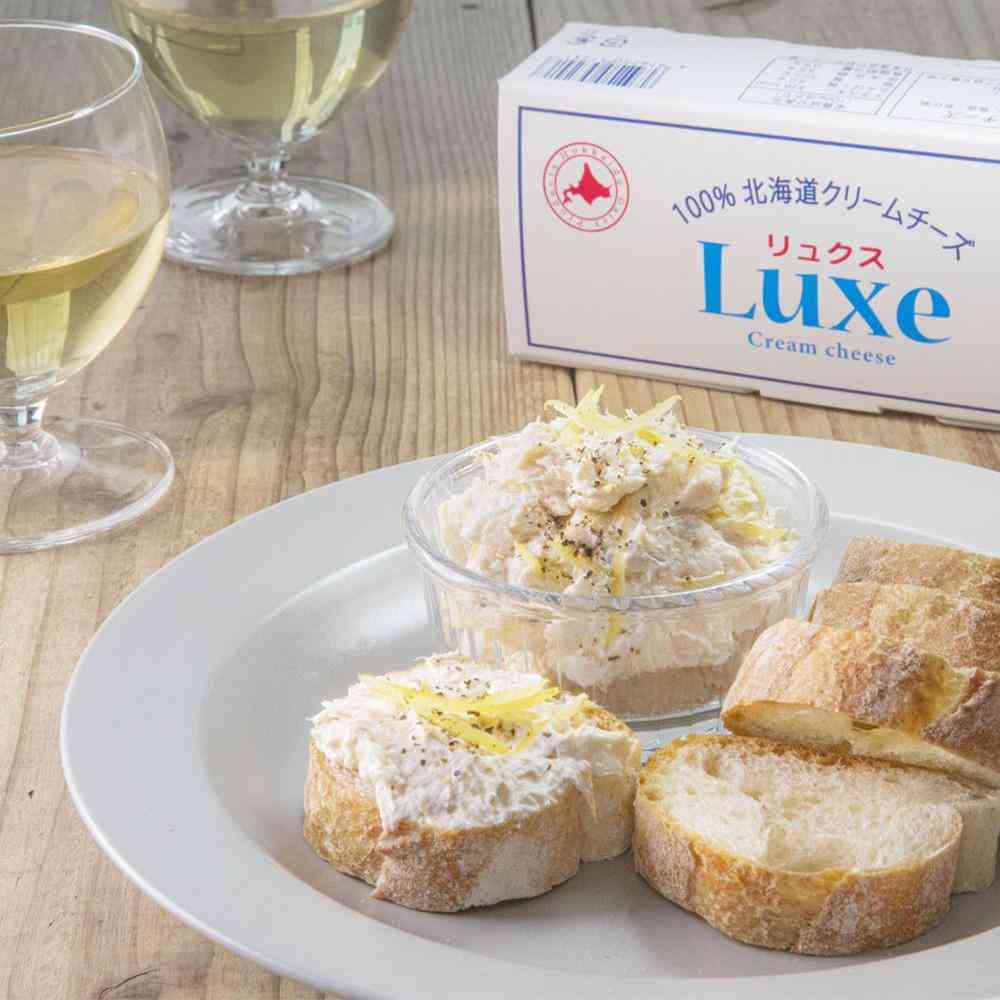 北海道、クリームチーズ、北海道乳業、400g、リュクス、luxe、北海道産、国産、保存料不使用、やわらかい、白い、大きい、大容量、チーズ、濃い、濃厚、オードブル、前菜、おつまみ、料理、チーズケーキ、レアチーズ、プロ仕様