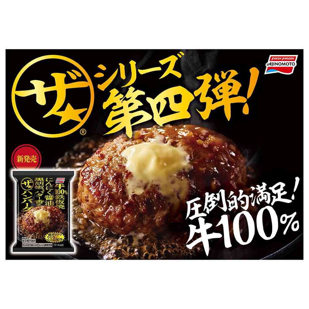 ハンバーグ、ザ★、味の素、白ご飯、牛100%、にんにく醤油、バター、冷凍おかず