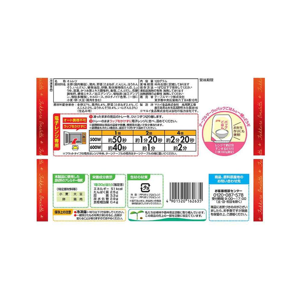 ![◆テーブルマーク 新鮮卵のふっくら オムレツ120g×12袋[直送品・クール便] 返品・キャンセル・他商品と同時購入は不可](/img/0170/goods/L/7075696-0012.jpg)