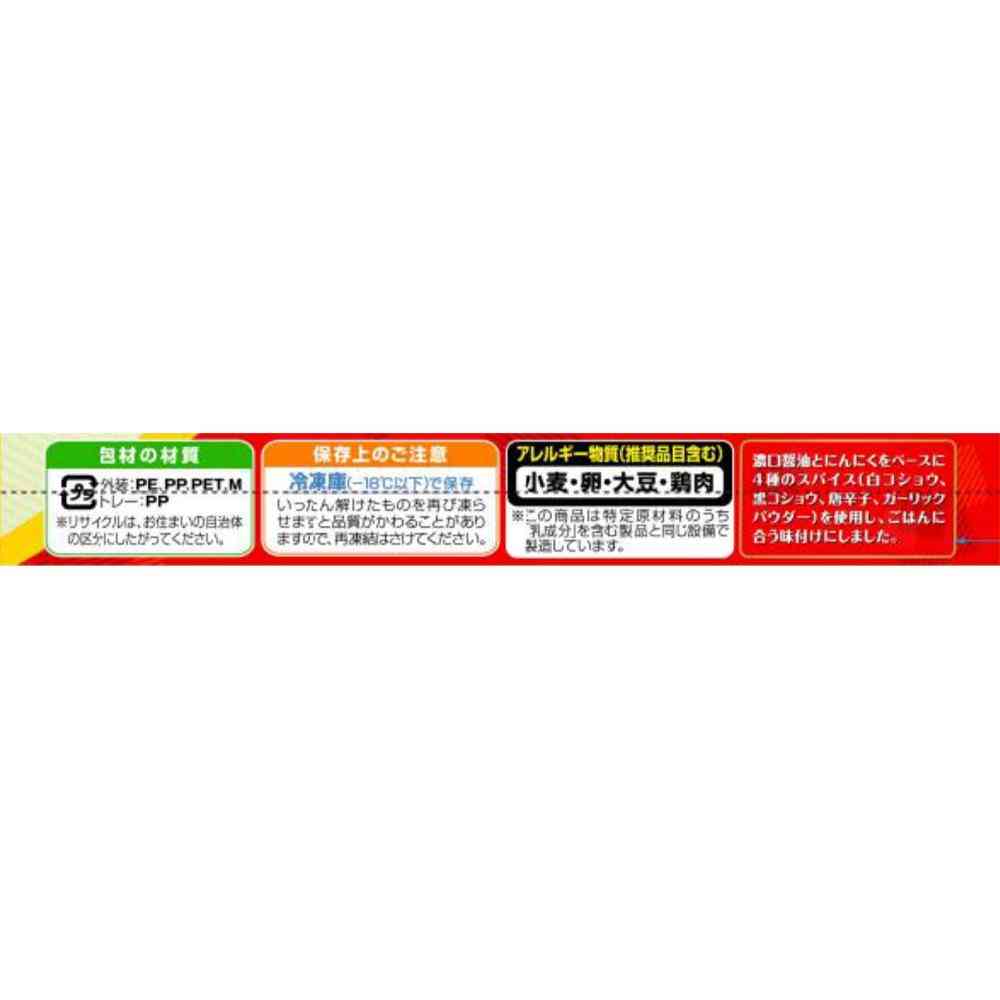 濃口醤油とにんにくをベースに4種のスパイスを使用した、ごはんに合うから揚げです。
